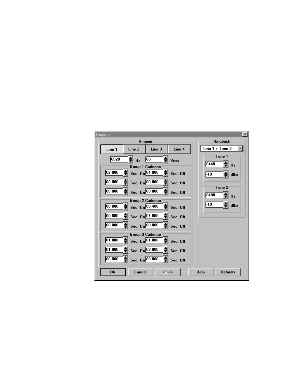 Ring frequency may be set from 17 Hz to 70 Hz in 1 Hz increments. Ring voltage may be