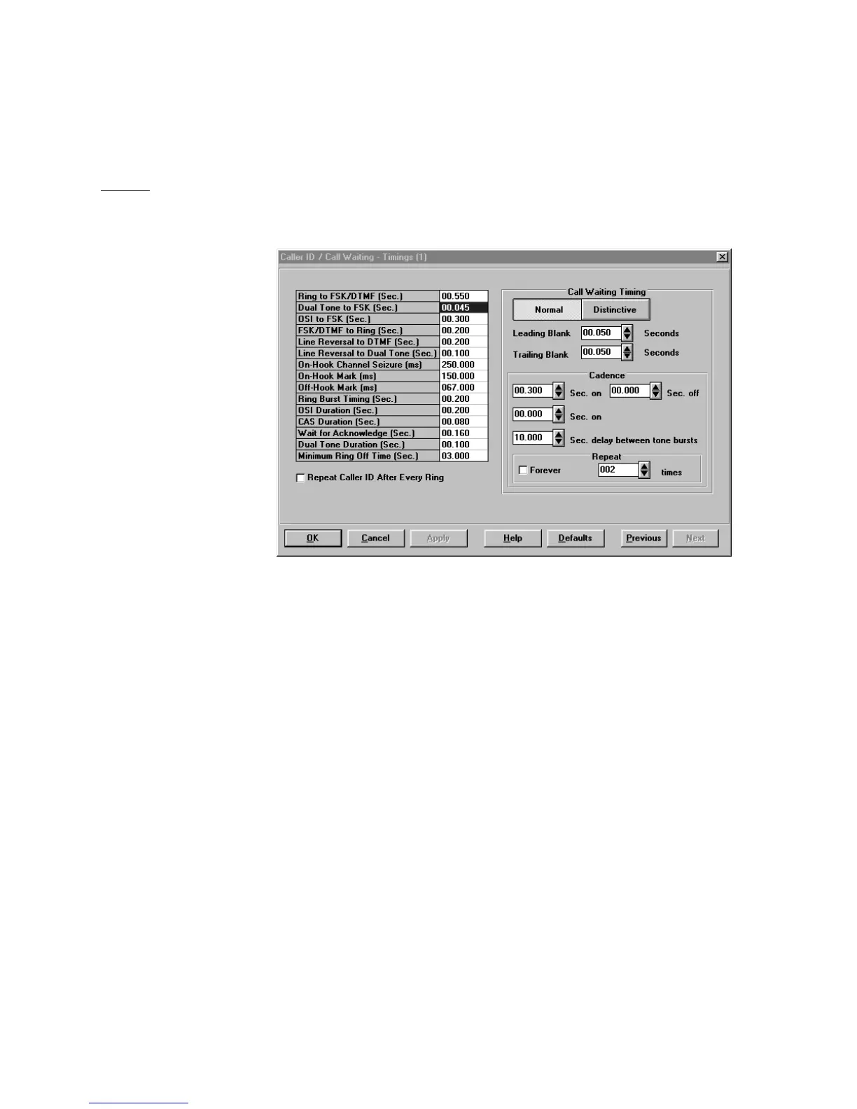 Figure 42. Caller ID/Call Waiting - Timings
