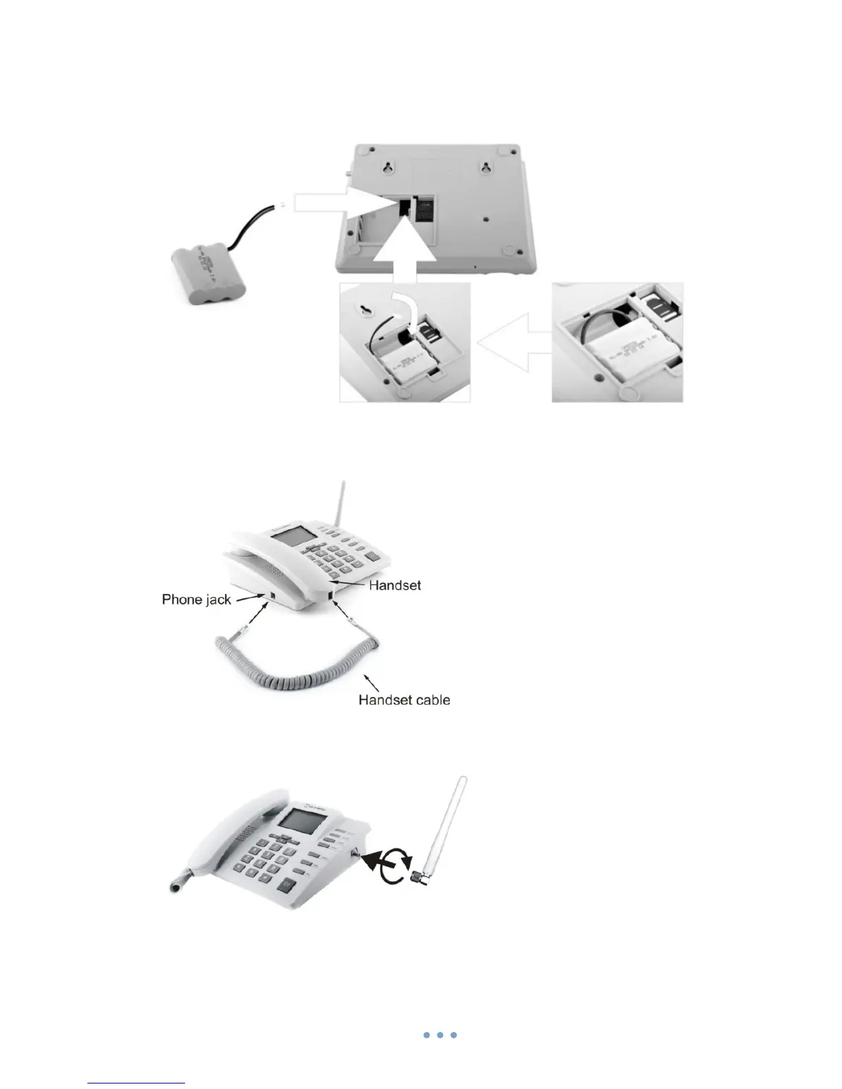 Connect one handset cable end to the handset and another one to the phone jack.