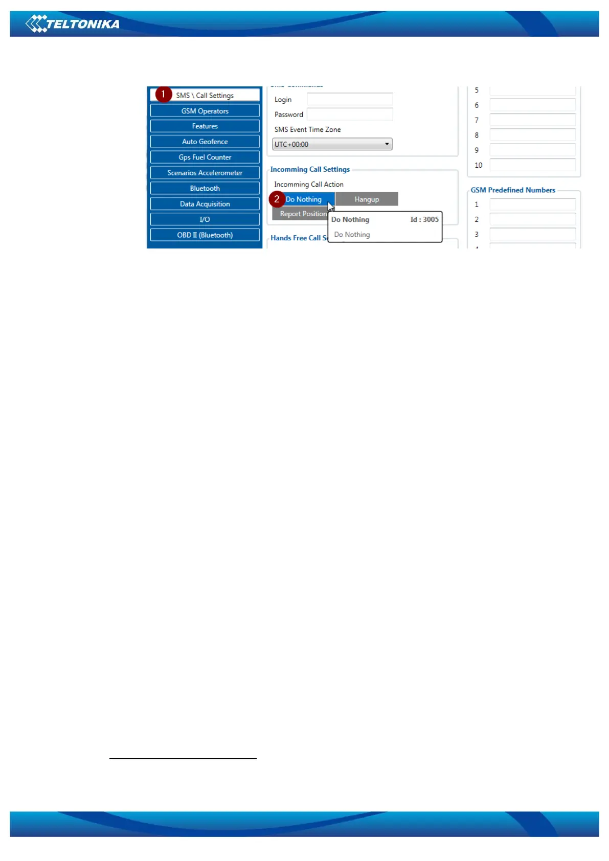 Figure 3. Incomming Call Action settings.