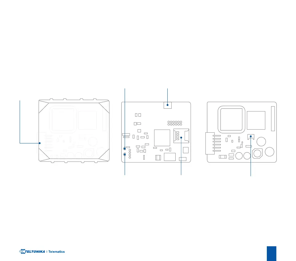Teltonika FMC130 - KNOW YOUR DEVICE; TOP VIEW; BOTTOM VIEW (WITHOUT COVER); TOP VIEW (WITHOUT COVER)