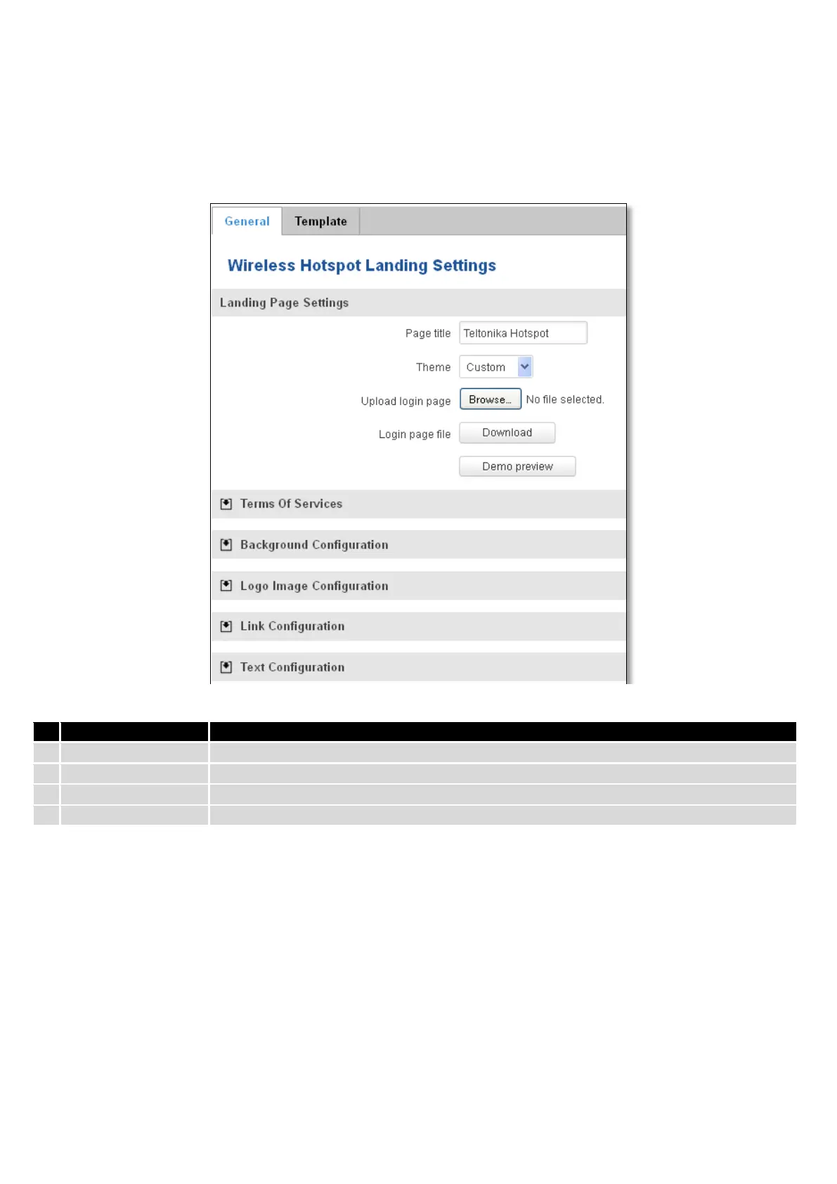 In the sections – “Terms Of Services”, “Background Configuration”, “Logo Image Configuration”, “Link