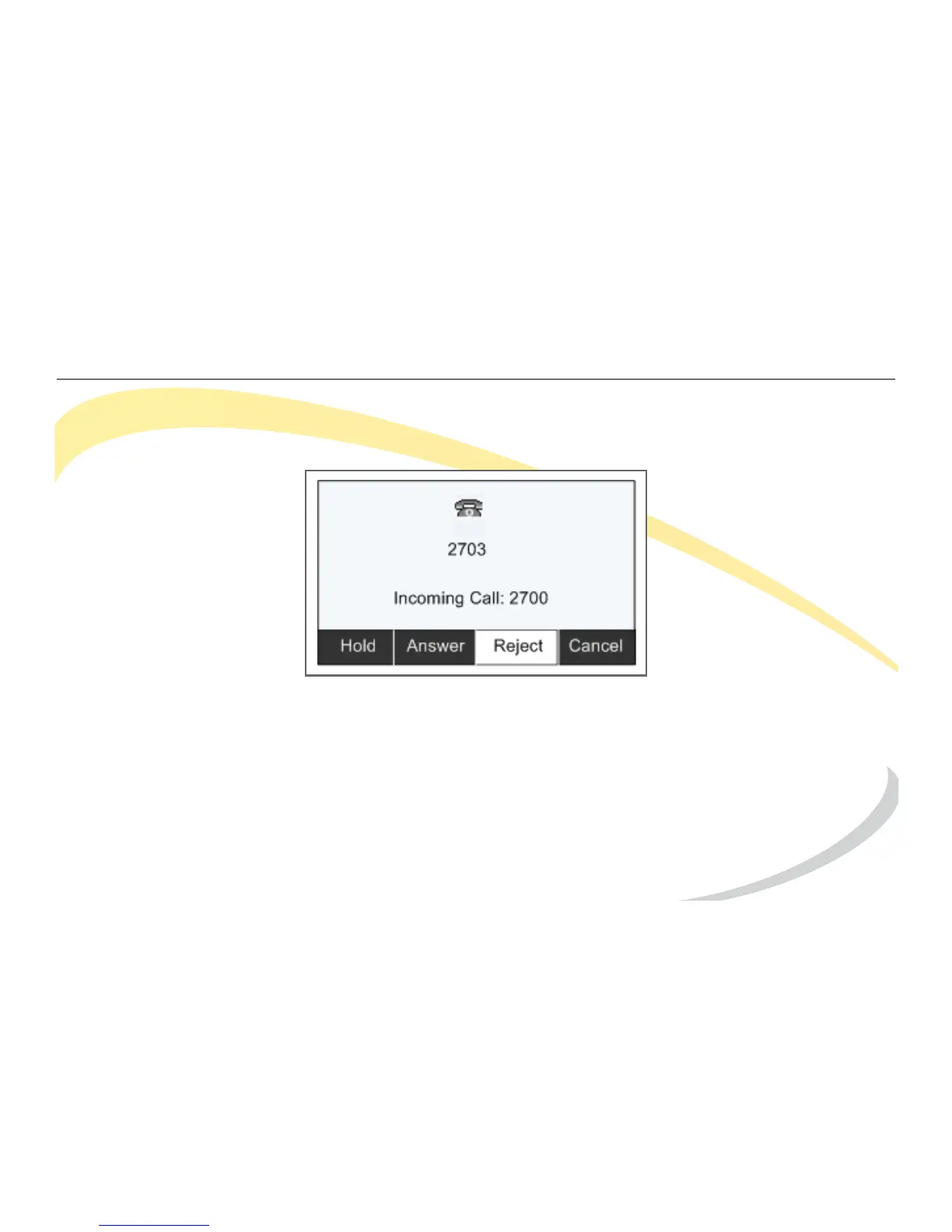 Press the Reject soft key to deny an incoming call and send it to voice mail.