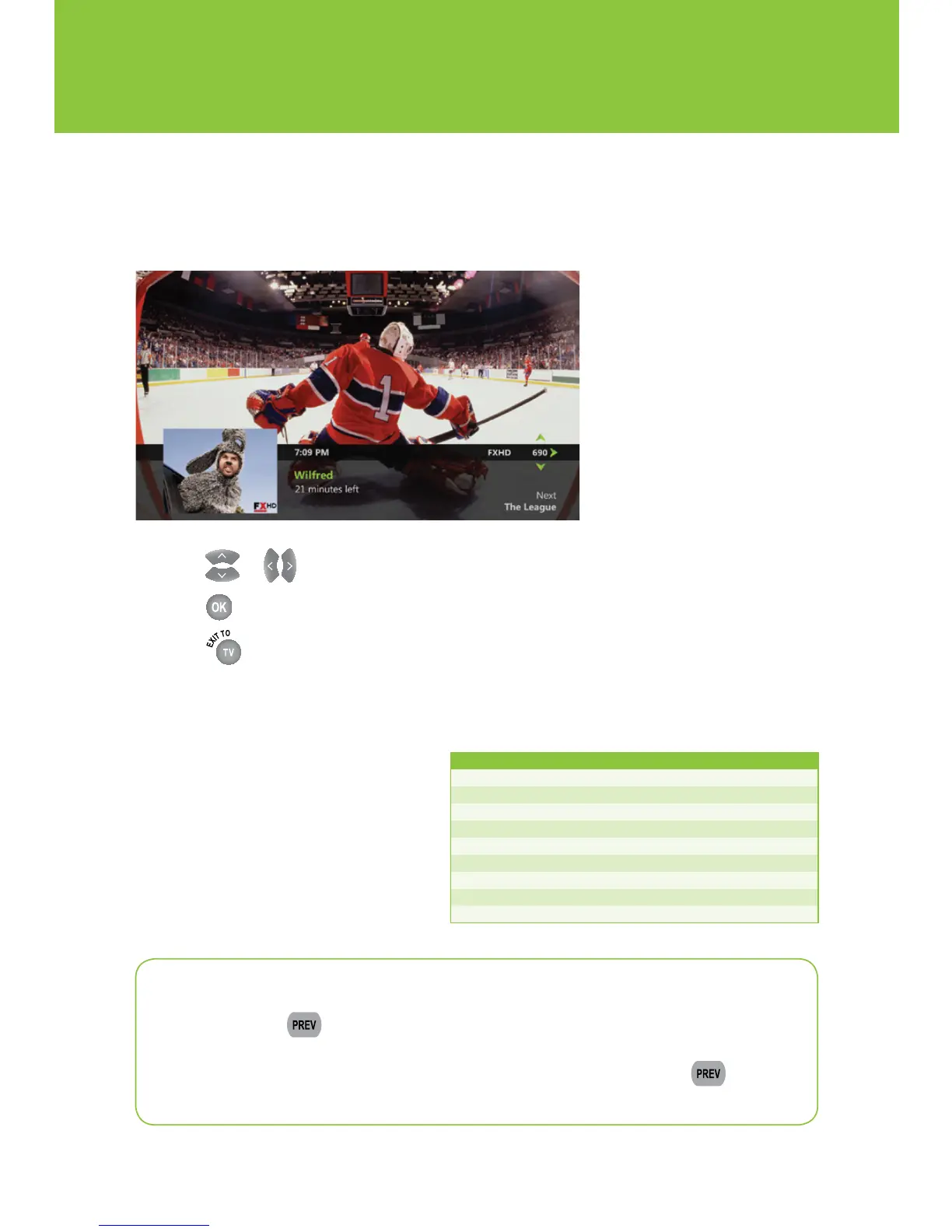 you were watching. You will also see a pop up of the last 5 channels you viewed with