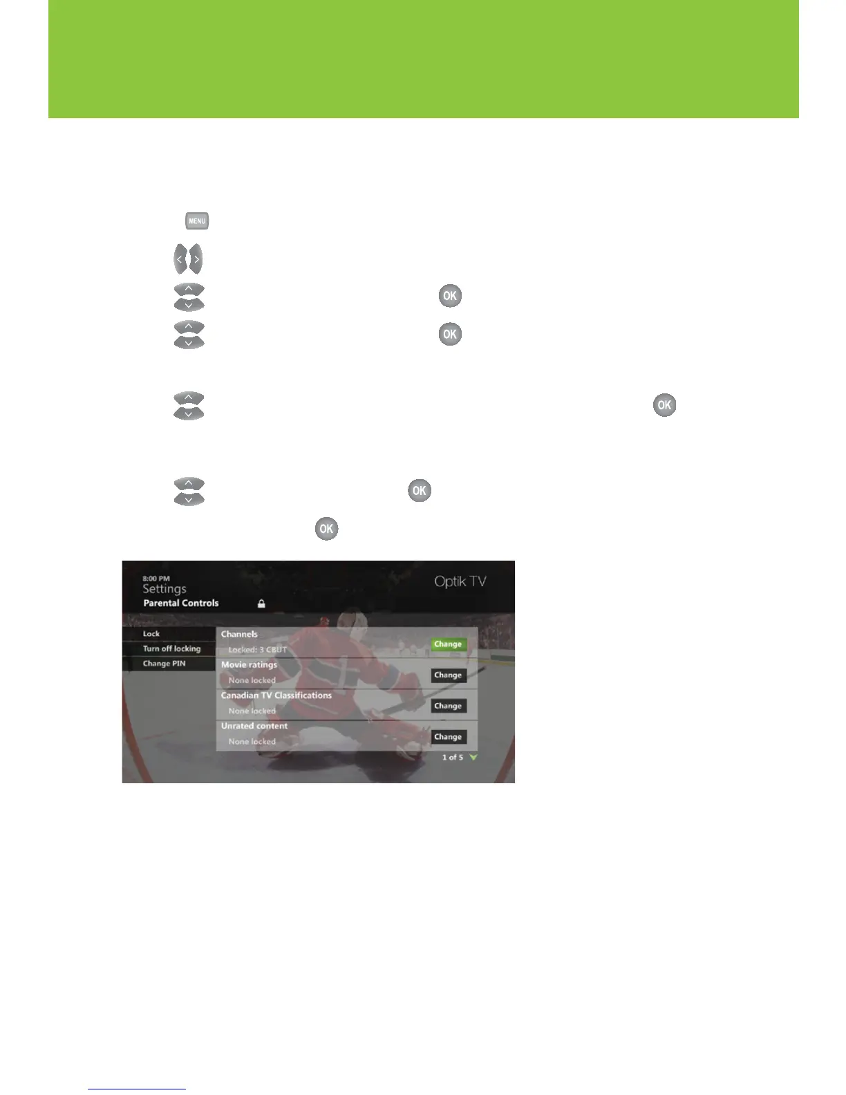 5 Enter your 4-digit Parental Control PIN with the number pad on your remote control.