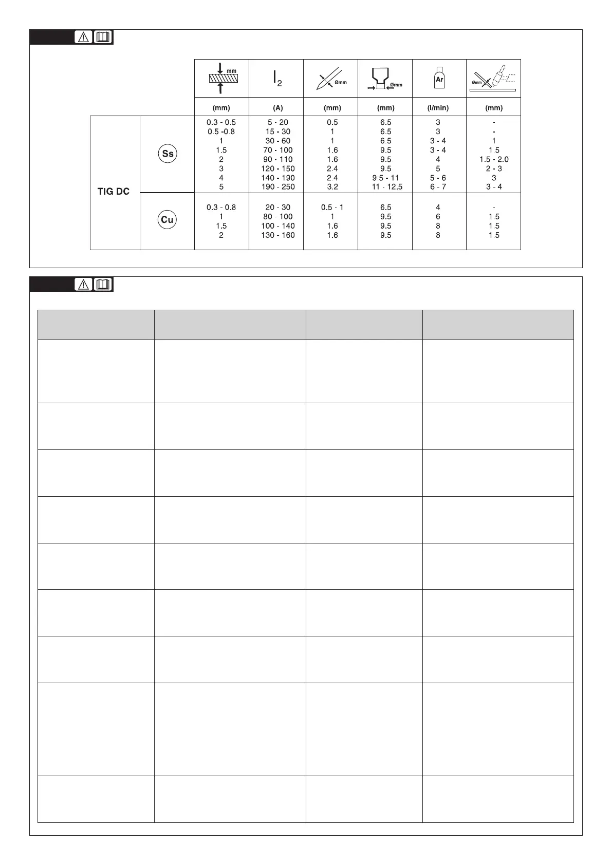 SUGGESTEDVALUESFORWELDING-DATI ORIENTATIVI PER SALDATURA