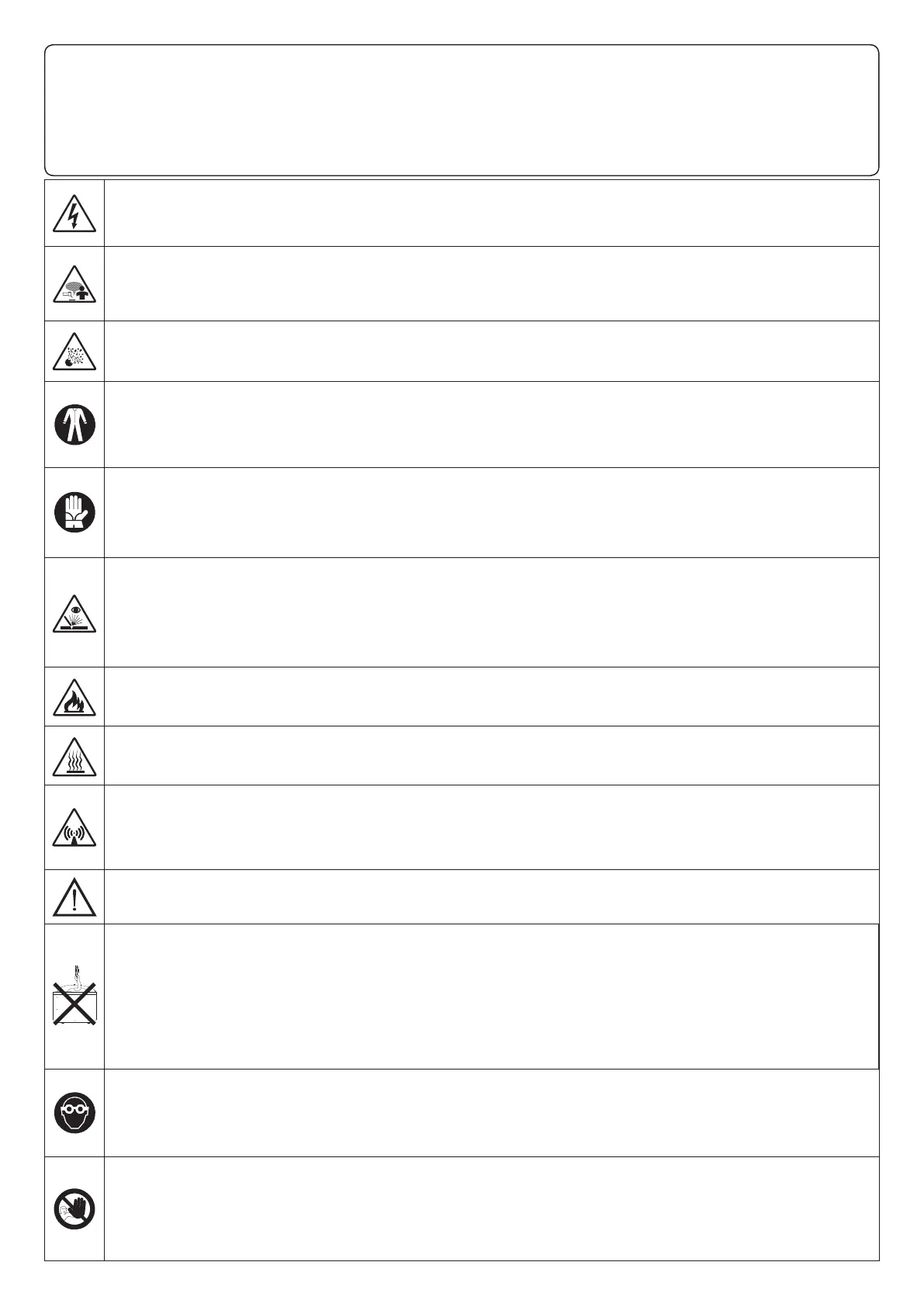(EN)WEARINGPROTECTIVE GLOVESISCOMPULSORY-(IT)OBBLIGOINDOSSARE GUANTIPROTETTIVI-(FR) PORTDESGANTSDE PROTECTIONOBLIGATOIRE-(ES)