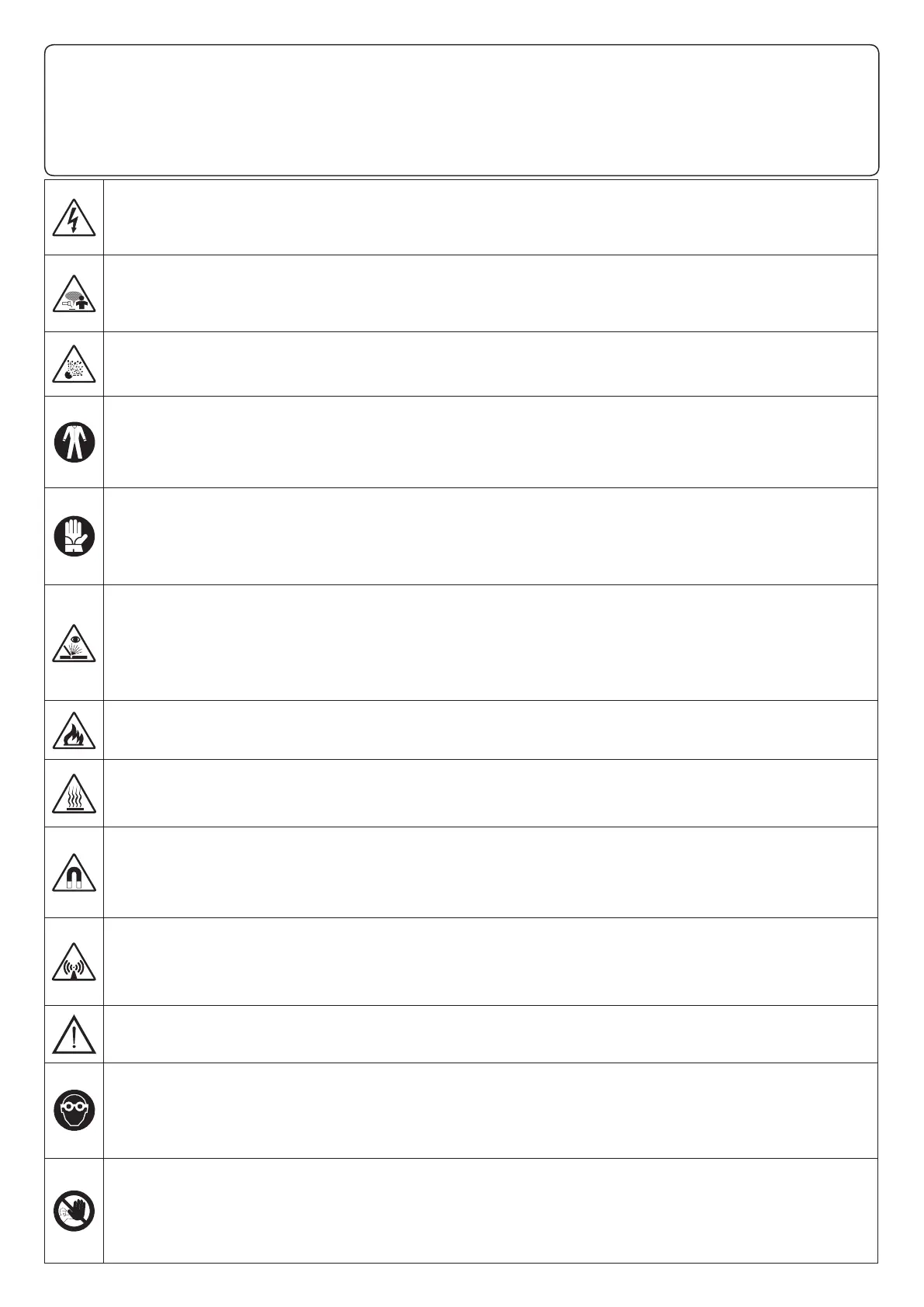 (EN) DANGER OF STRONG MAGNETIC FIELD - (IT) PERICOLO CAMPI MAGNETICI INTENSI - (FR) DANGER CHAMPS MAGNÉTIQUES INTENSES - (ES) PELIGRO CAMPOS MAGNÉTICOS
