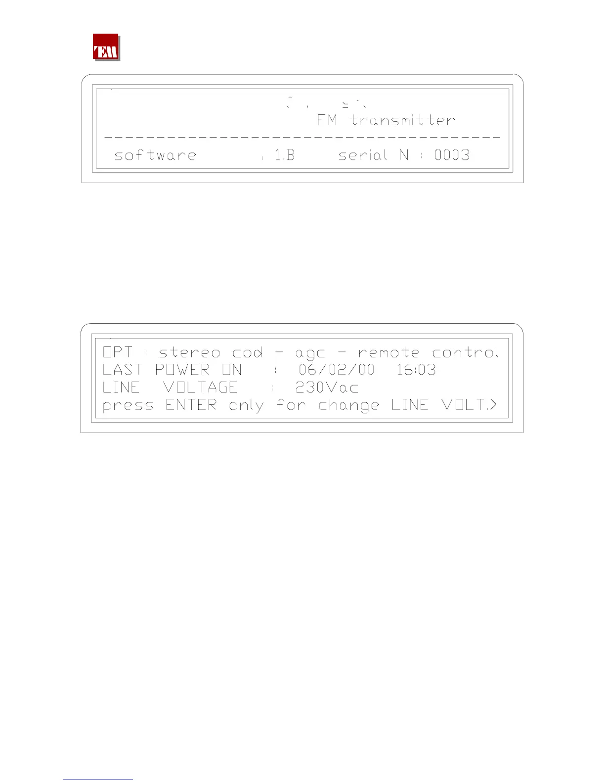 On the screenshot the options contained in the transmitter and the hour of the last switching on will