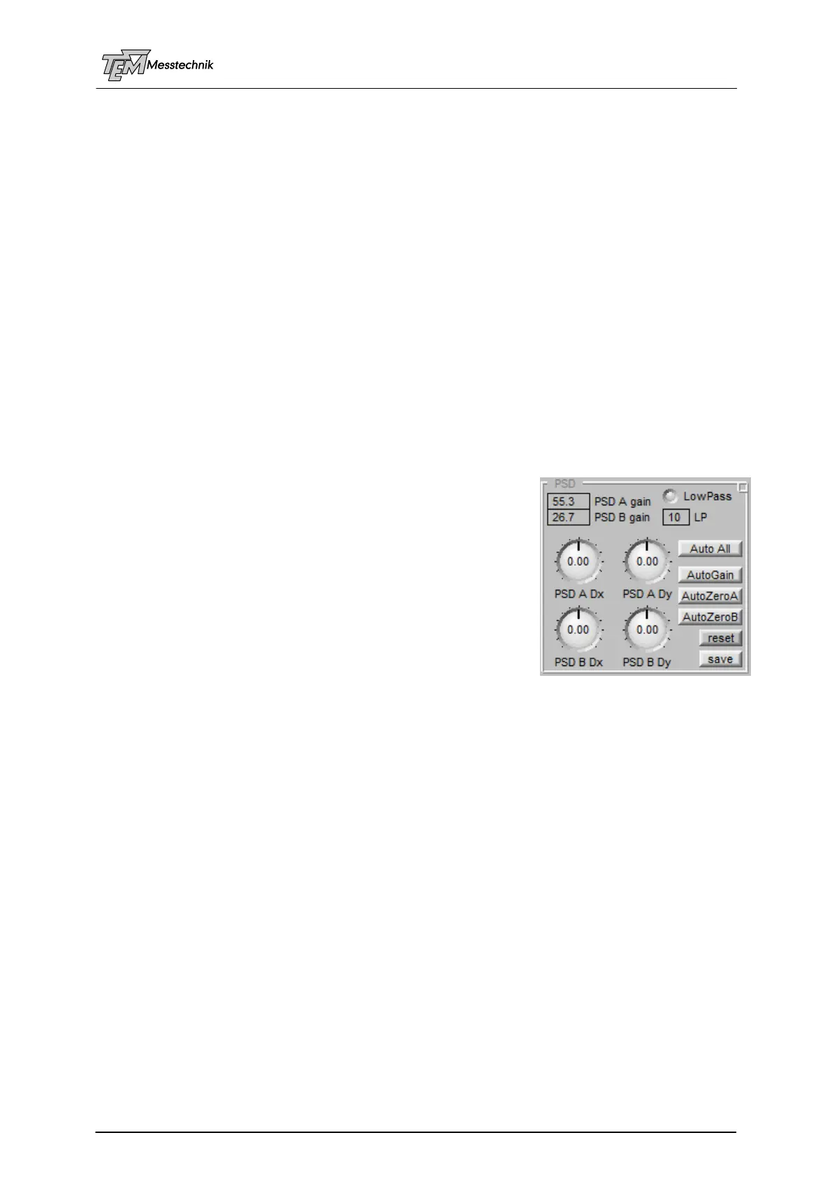 The PSD offset values "PSD A Dx", "PSD A Dy", "PSD B Dx", "PSD B Dy", define the