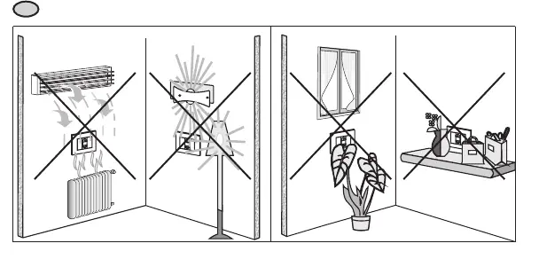 - Do not set up any barriers (flower pots, books, framed photos, a radio, etc.) between the detector and the area covered by its