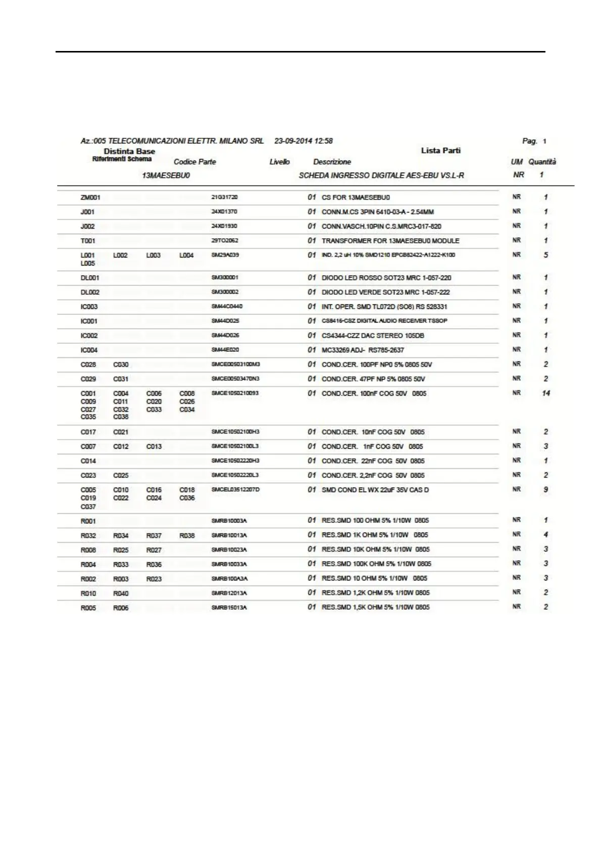 13MAESEBU0 Part list page 1 of 2