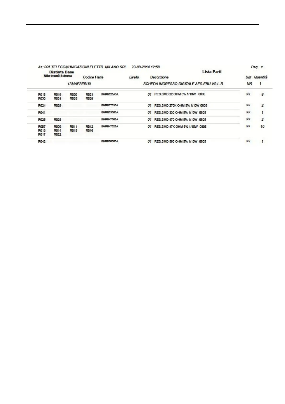 13MAESEBU0 Part list page 2 of 2