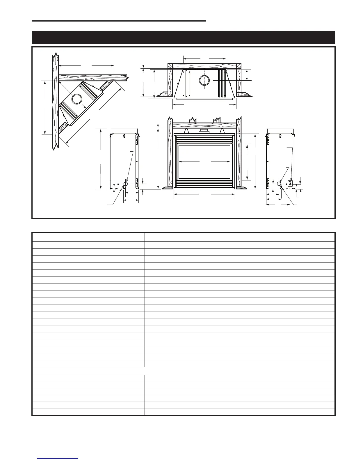 Fig. 2b Fireplace specifications and framing dimensions.