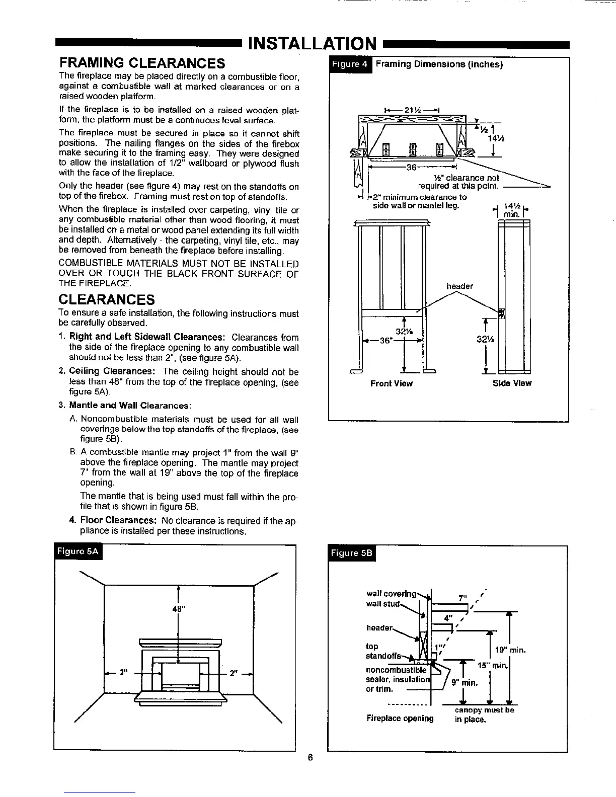 Temco ADF3324N - Installation and Clearances; Framing the Firebox Opening; General Installation Clearances