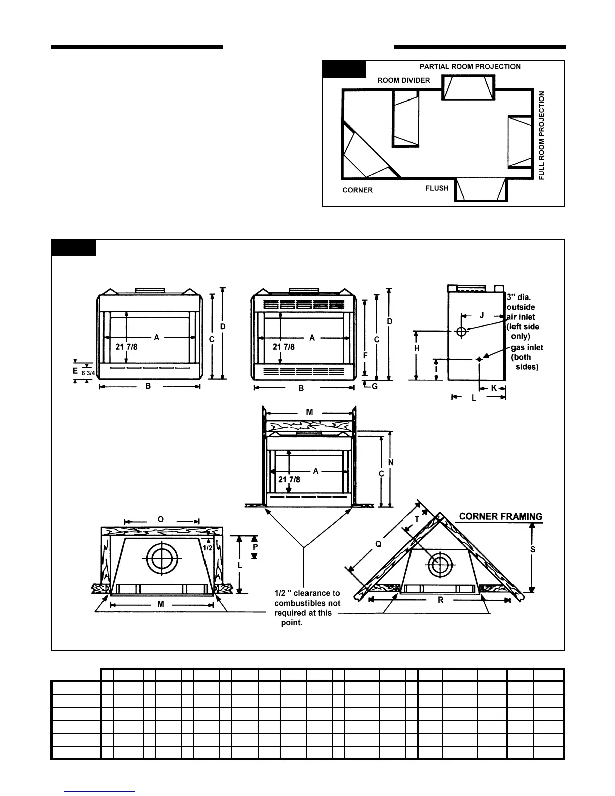 Fireplace and Framing Dimensions