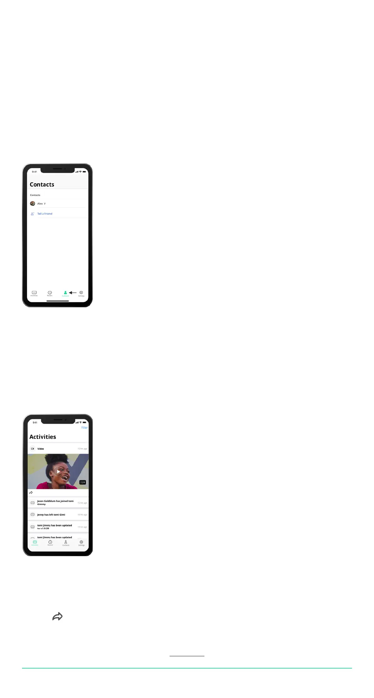 To see the activity stream, go to the “Activities” tab in the mobile app.