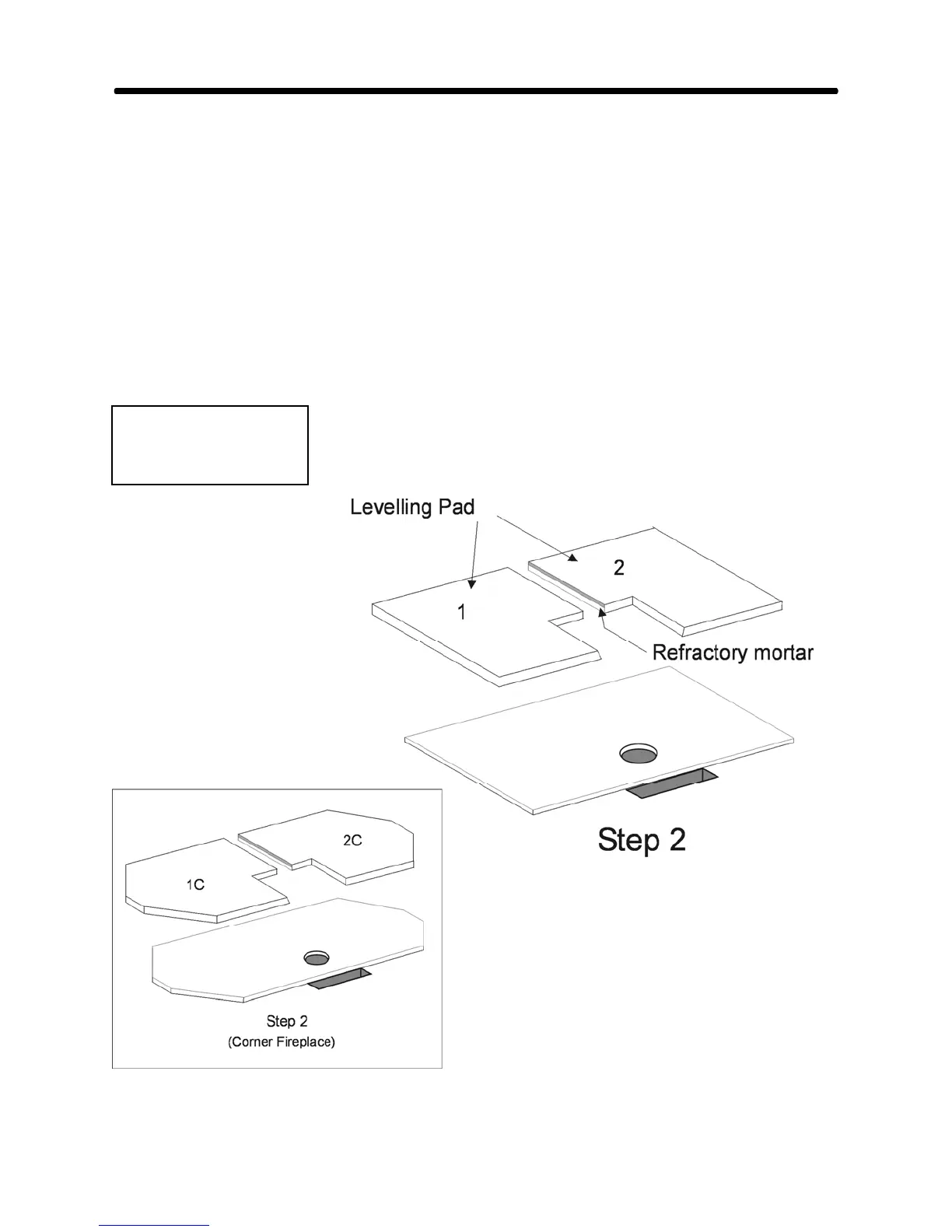 Lay the two halves of the Leveling Pad in a 1/2" (12mm) bed of common mortar, using refractory