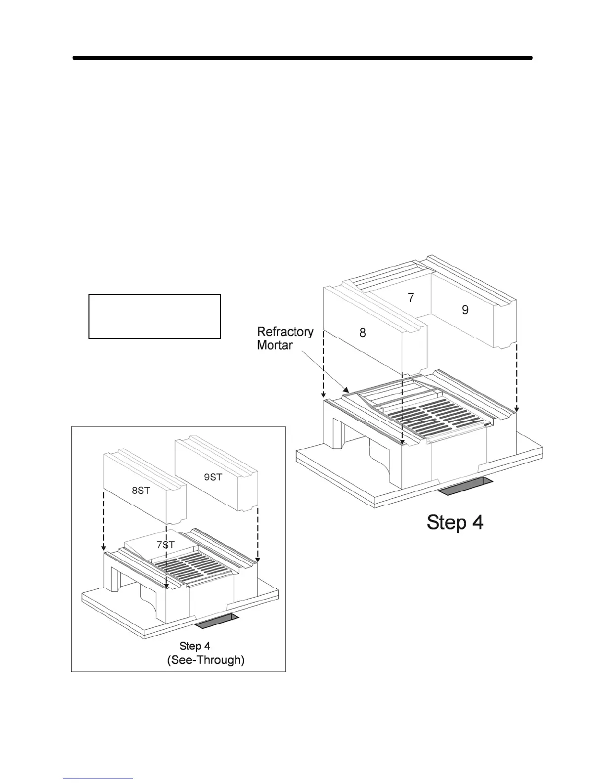 Assemble the second course, parts #7, #8 & #9. A small bead (½”) of refractory mortar is laid on