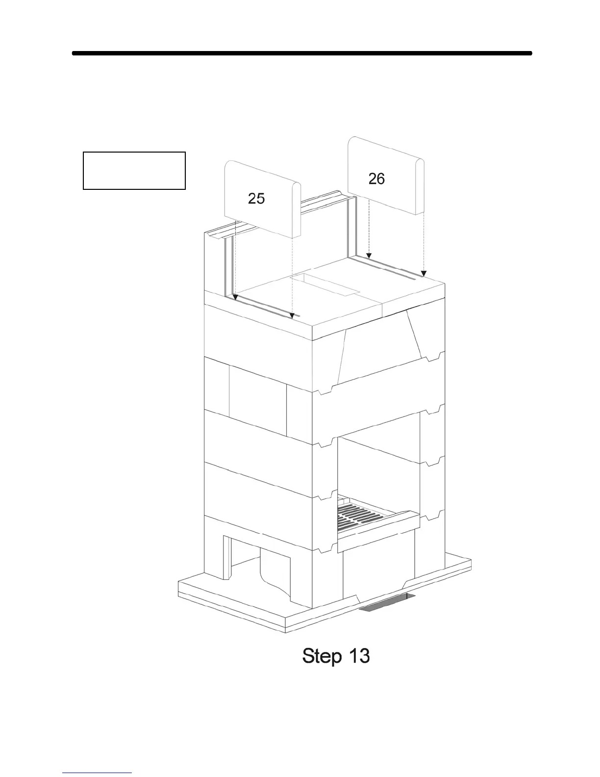 Install the 2 short side walls of the secondary combustion chamber, parts 25 & 26. These parts