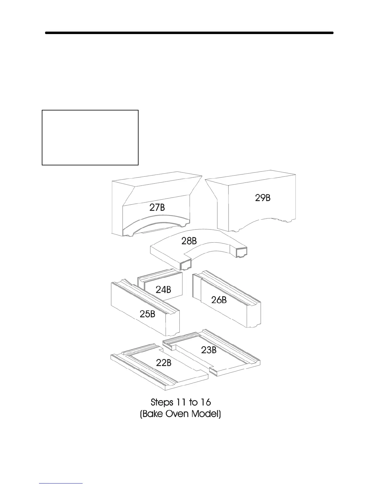 Assemble the Bake Oven parts, in numerical order, as illustrated below. Parts 22B and 23B are
