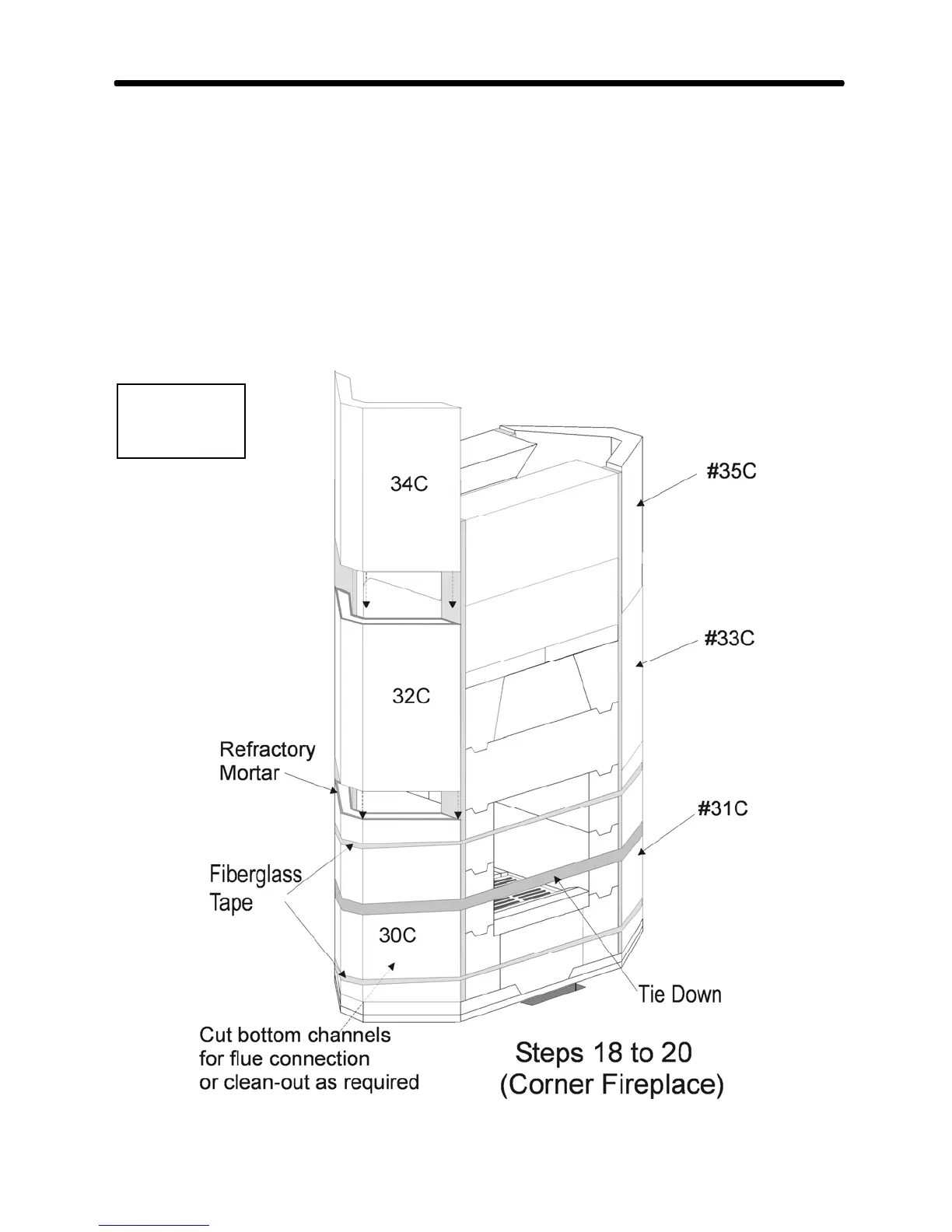 If the chimney connection is to be made in the side of the fireplace, dry assemble the first corner