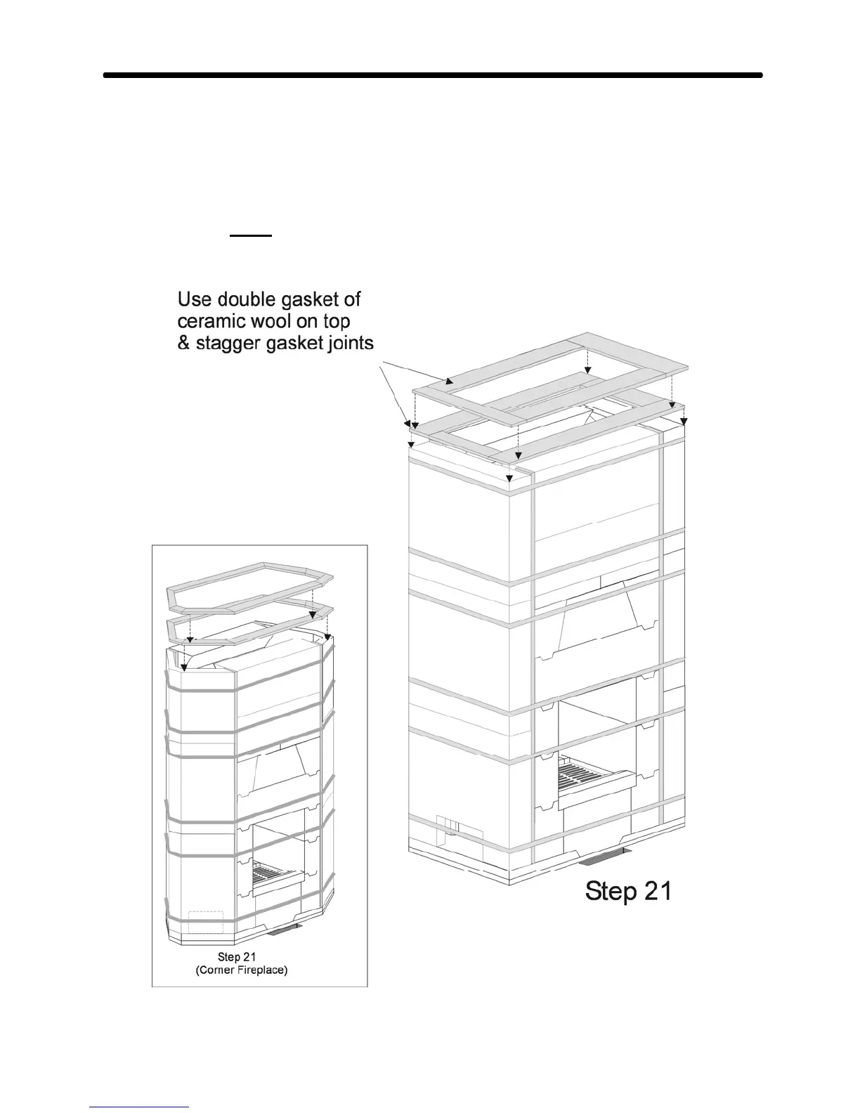 Install a gasket of strips of ceramic wool to the top of the fireplace, as illustrated below. (A few