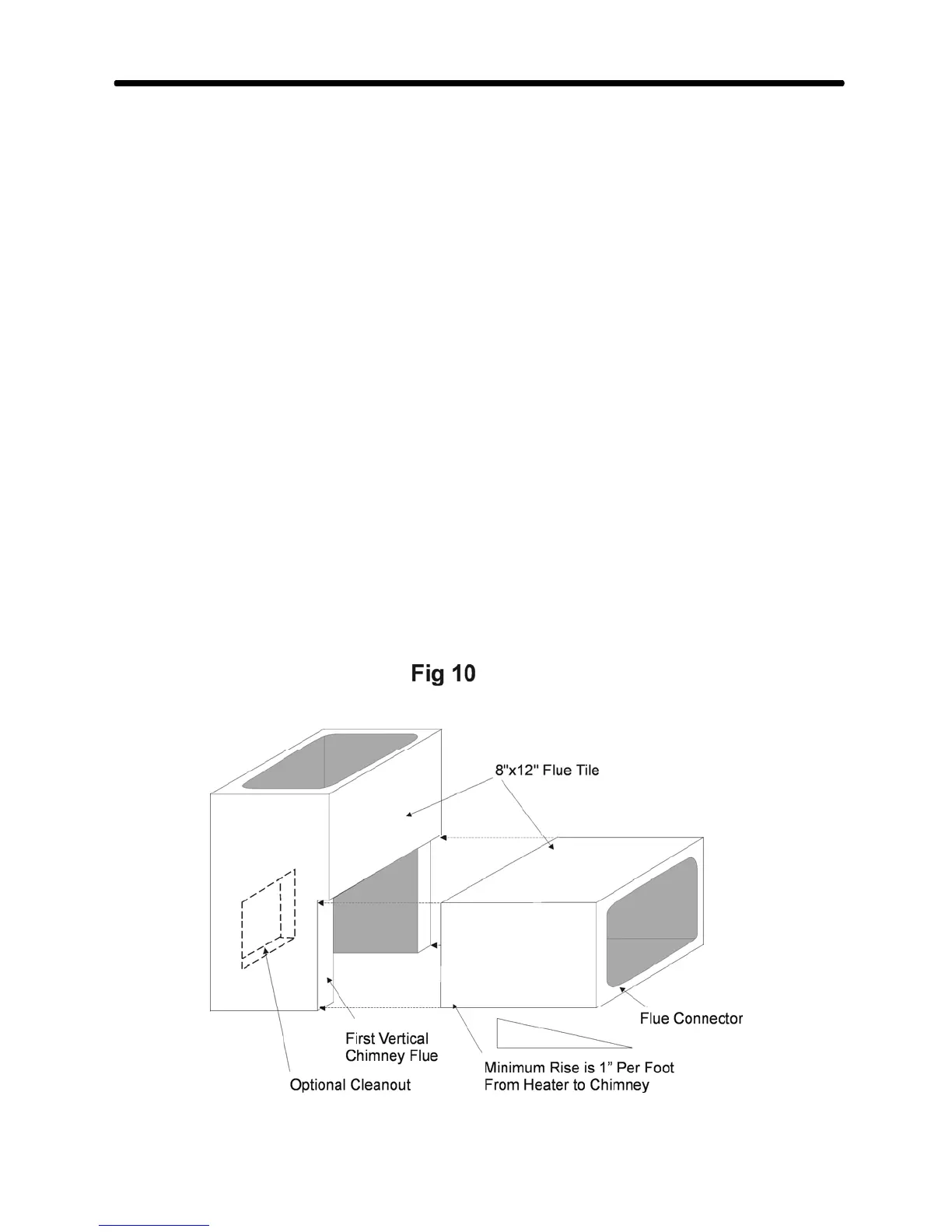 Cut the first vertical flue tile, as shown in Figure # 10. Note that the chimney cleanout is shown