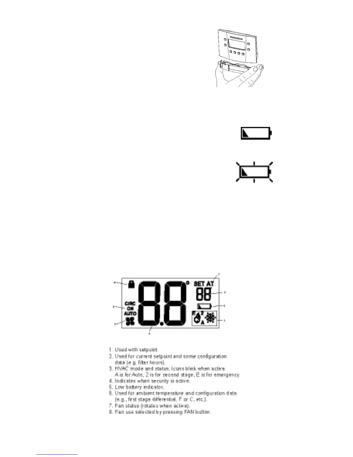 When the batteries are low the thermostat will enter a low battery mode.