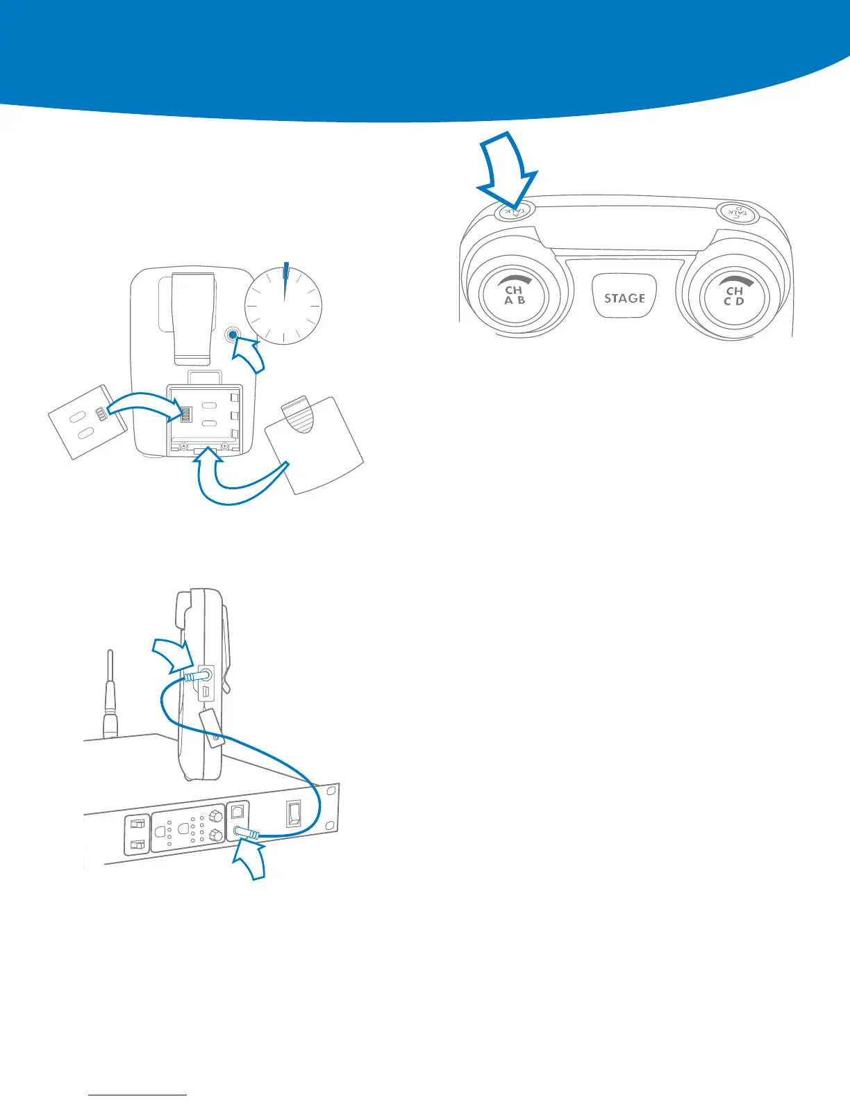 Connect the 3.5mm data pairing cable from the Base to the Belt