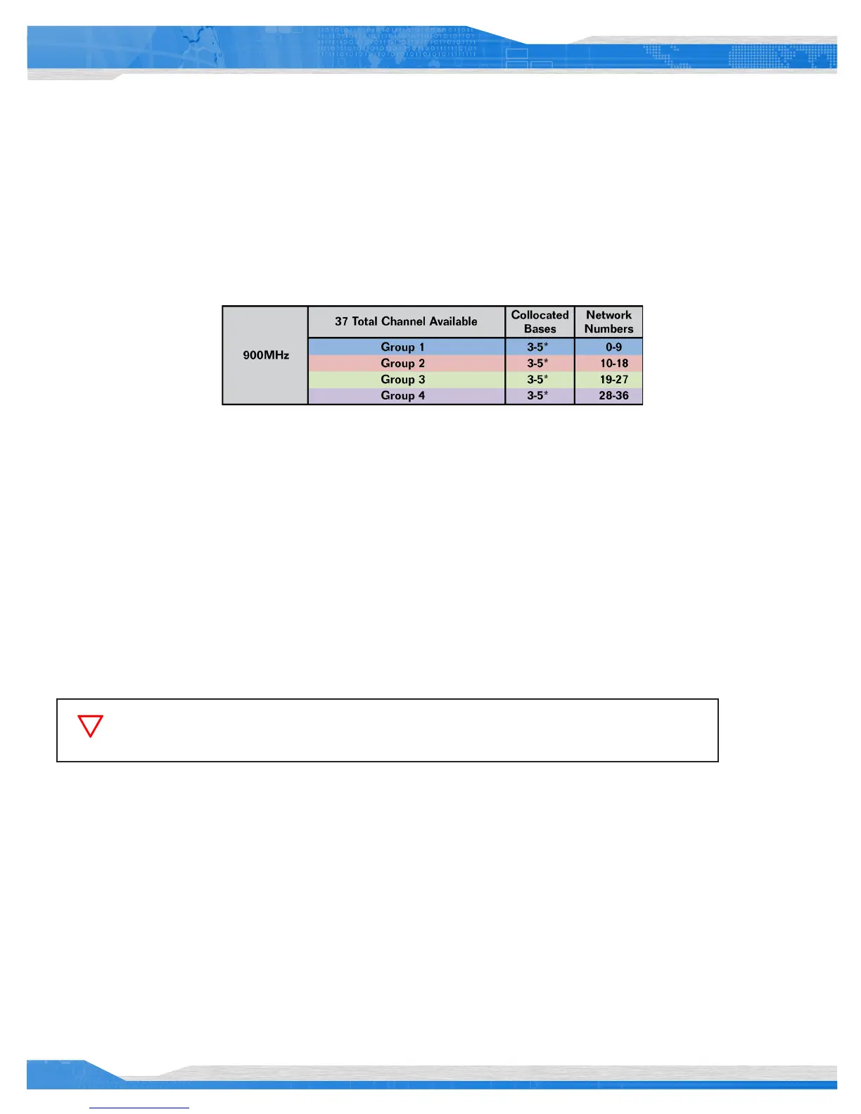 would assign each BaseStation a Network Number (0,1,2) from Group One. The chart below outlines each Network Number Group and its