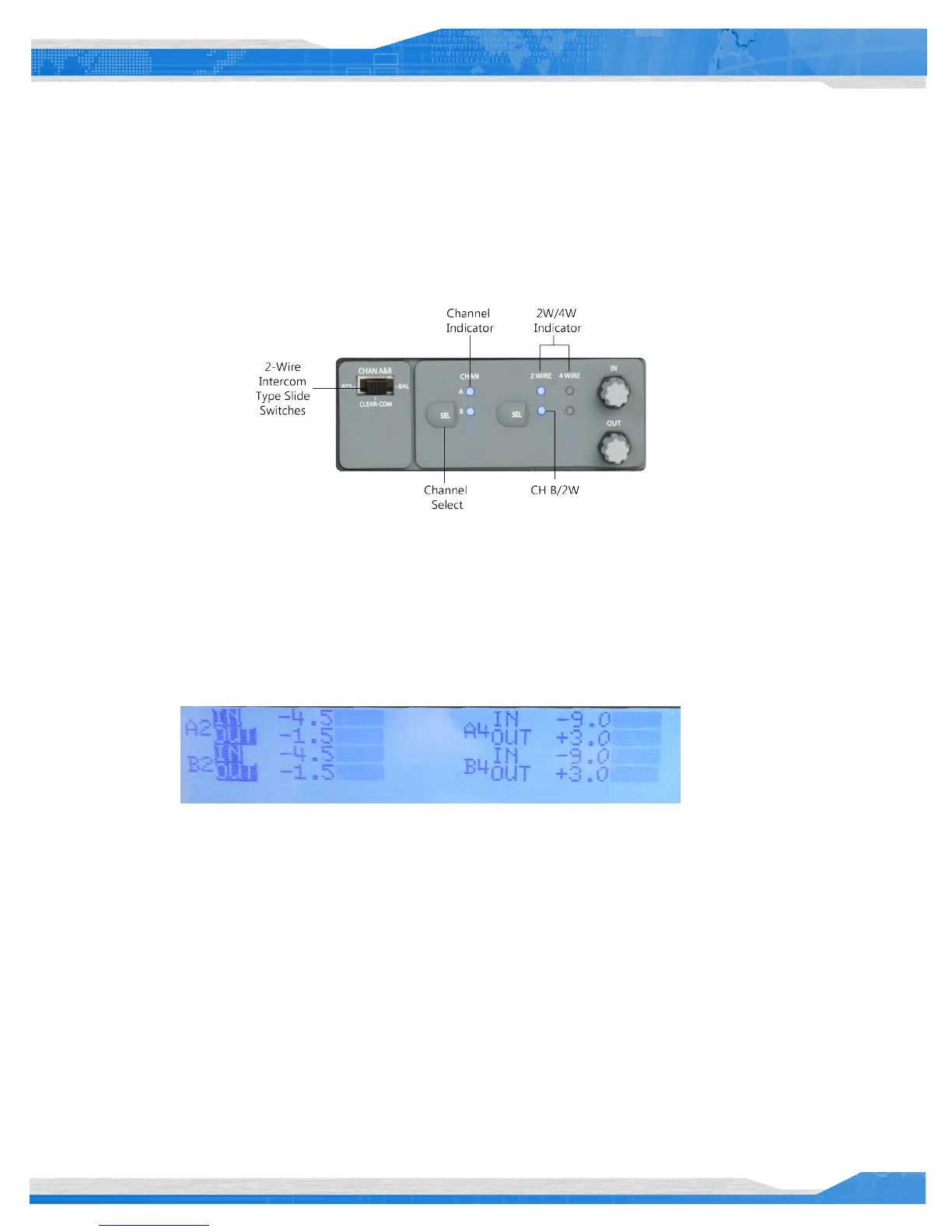 In this diagram, Channel A, 2-Wire levels are selected for adjustment.