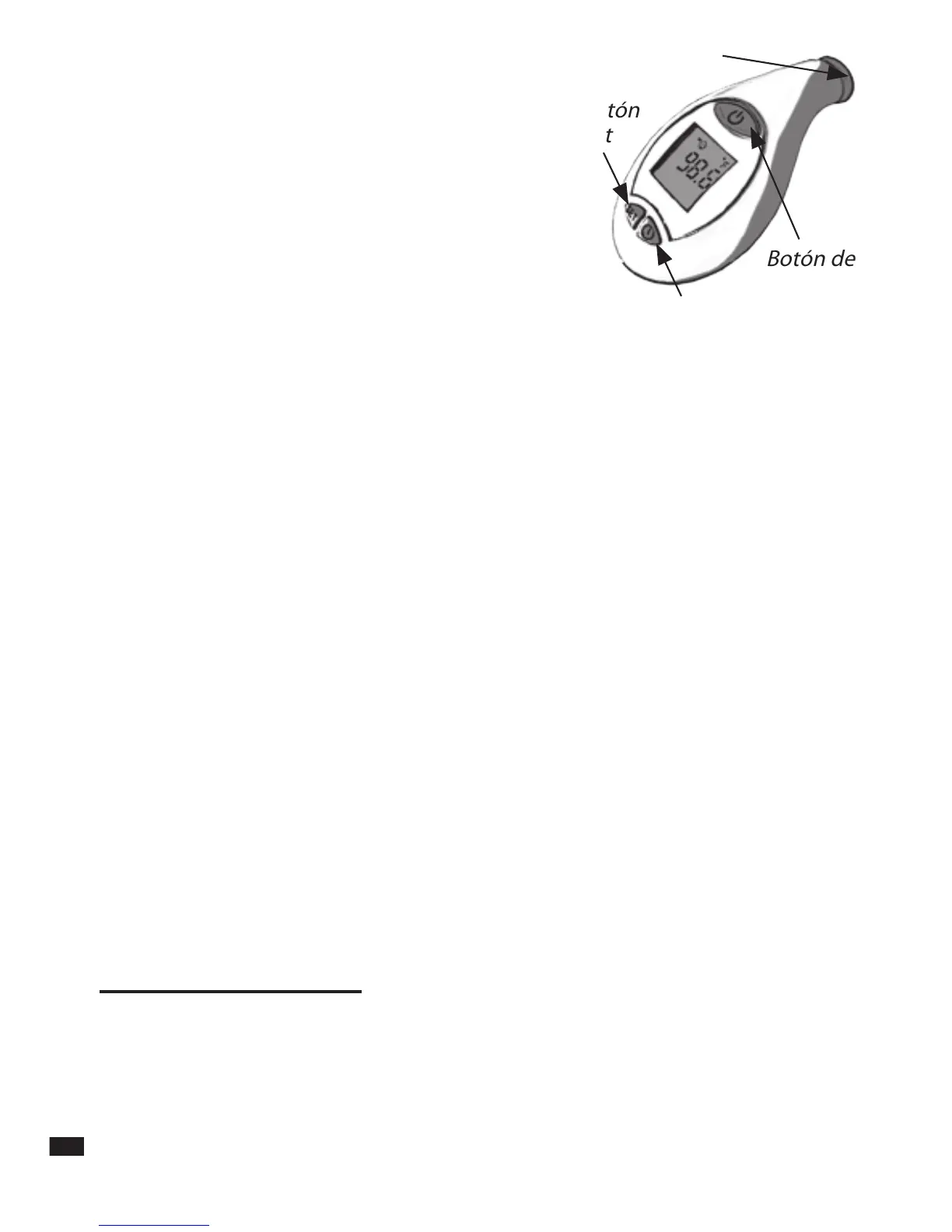 3. No sumerja el termómetro en agua u otros líquidos. Esta unidad no es a prueba