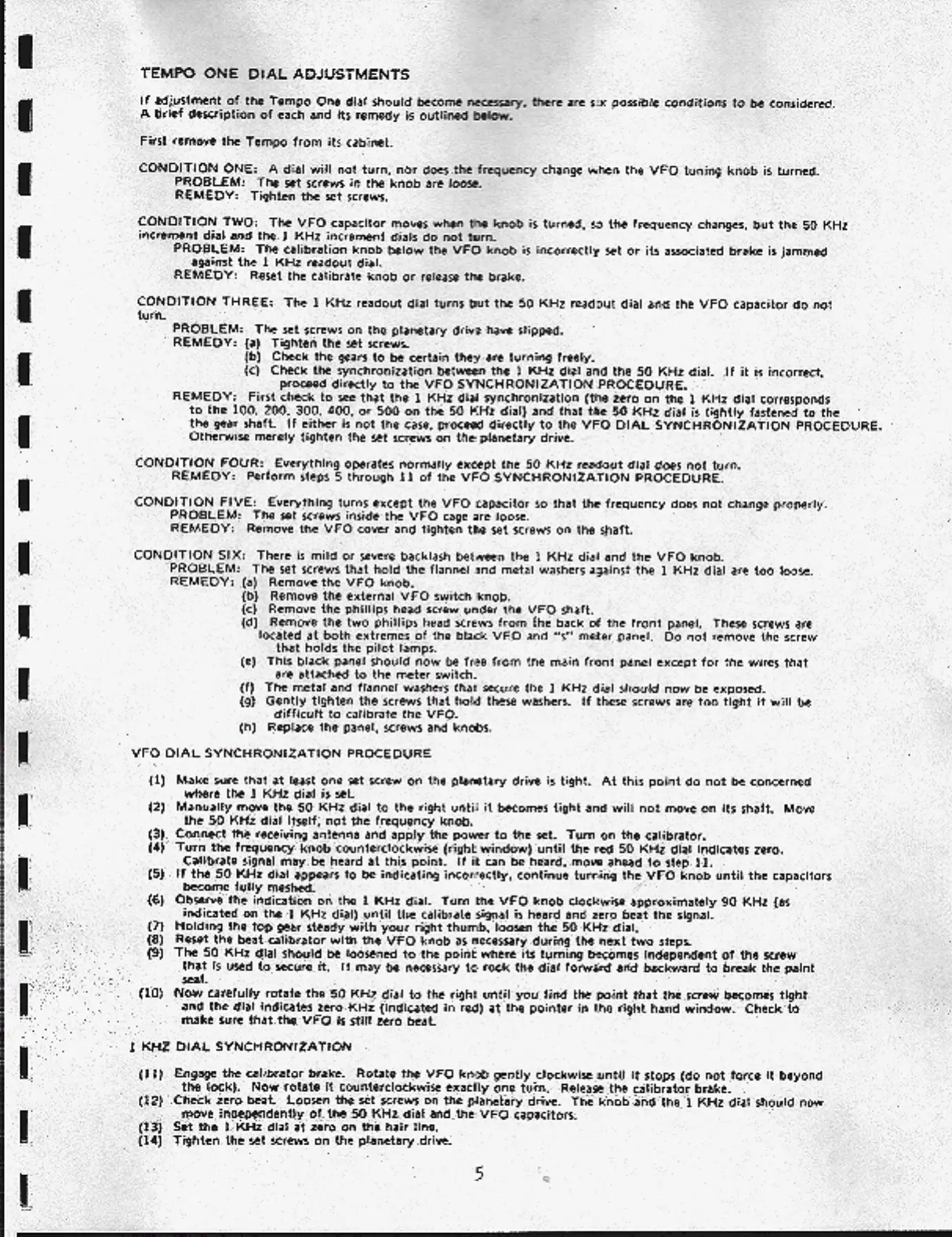 Tempo One FT200 - Tempo One Dial Adjustments; VFO Dial Synchronization; 1 KHz Dial Synchronization