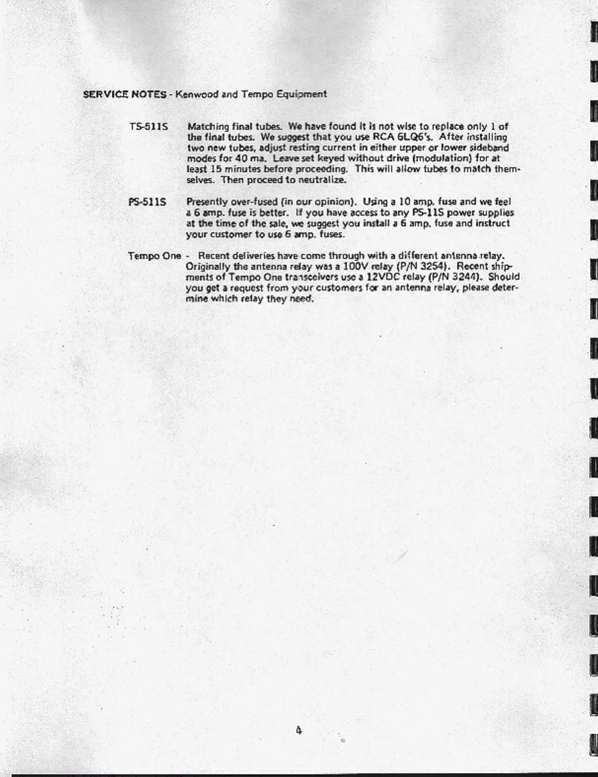 Tempo One FT200 - Service Notes; Tempo One Specific Notes