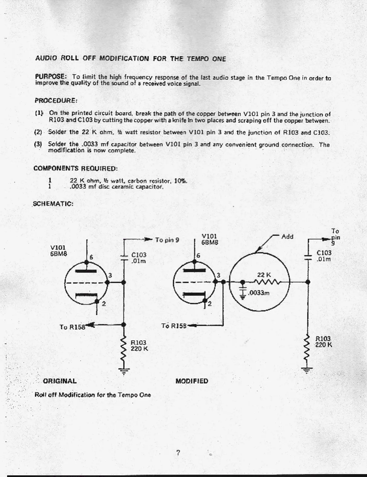 Tempo One FT200 - Tempo One Audio Roll Off Modification