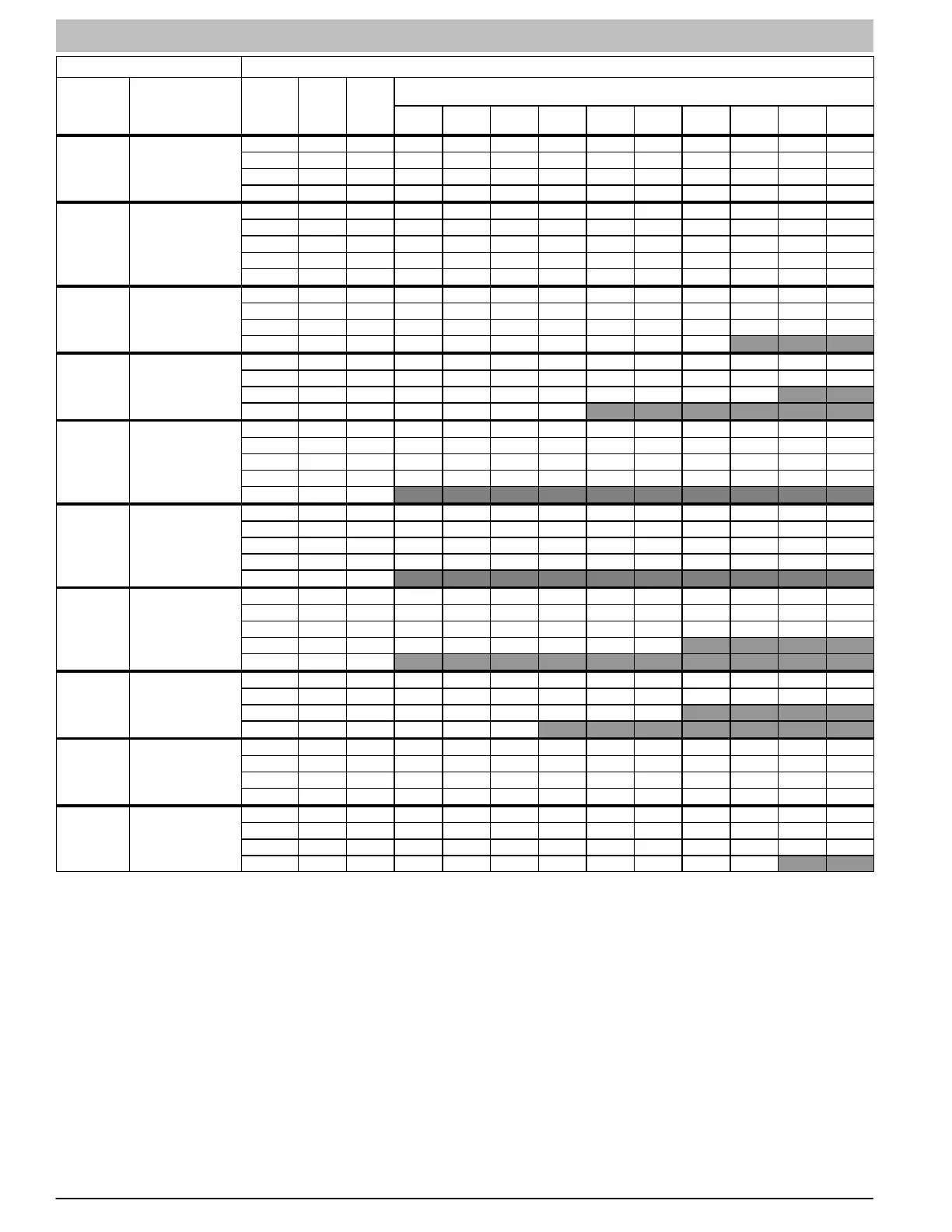 3. Shaded areas indicate that this airflow range is BELOW THE RANGE ALLOWED FOR HEATING OPERATION. THESE AIRFLOW RANGES