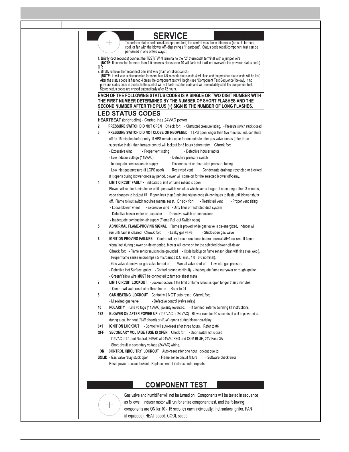 Tempstar B Series - Service Label and Diagnostics; Interpreting LED Status Codes; Performing Component Test