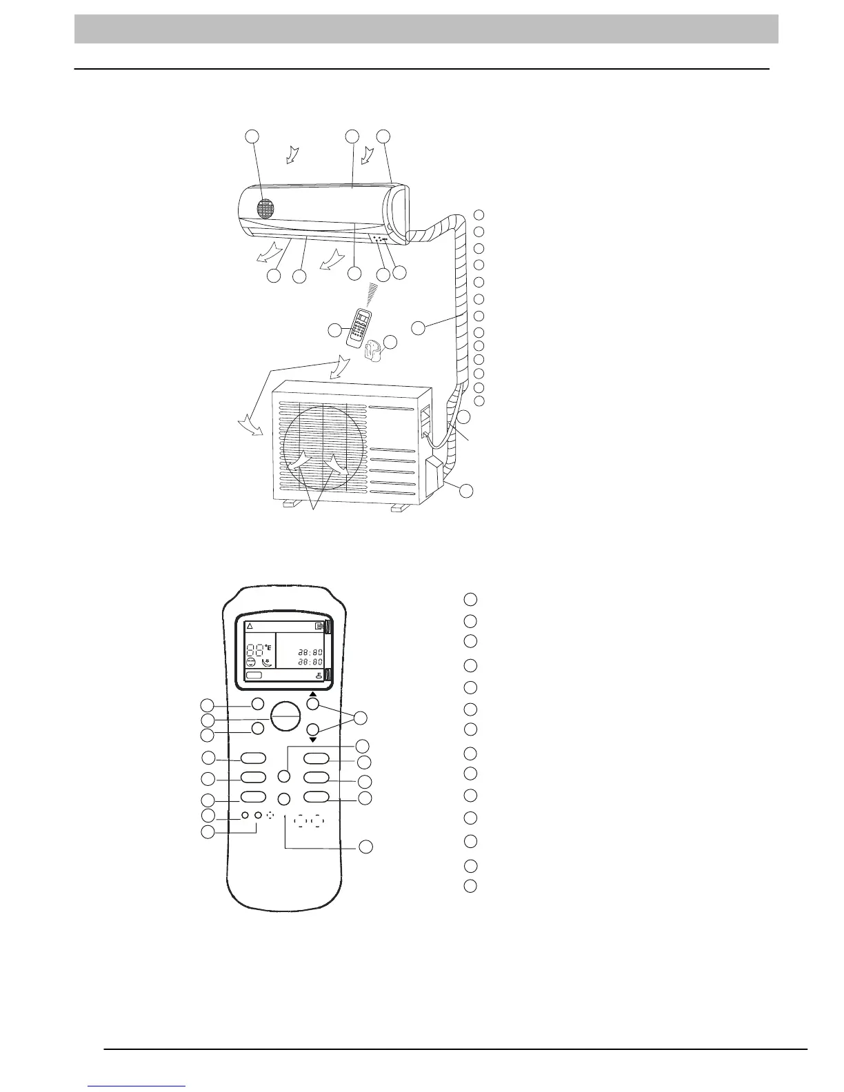 Tempstar DFS4(A/H) - Part Names and Identification; Indoor and Outdoor Unit Components; Remote Control Buttons