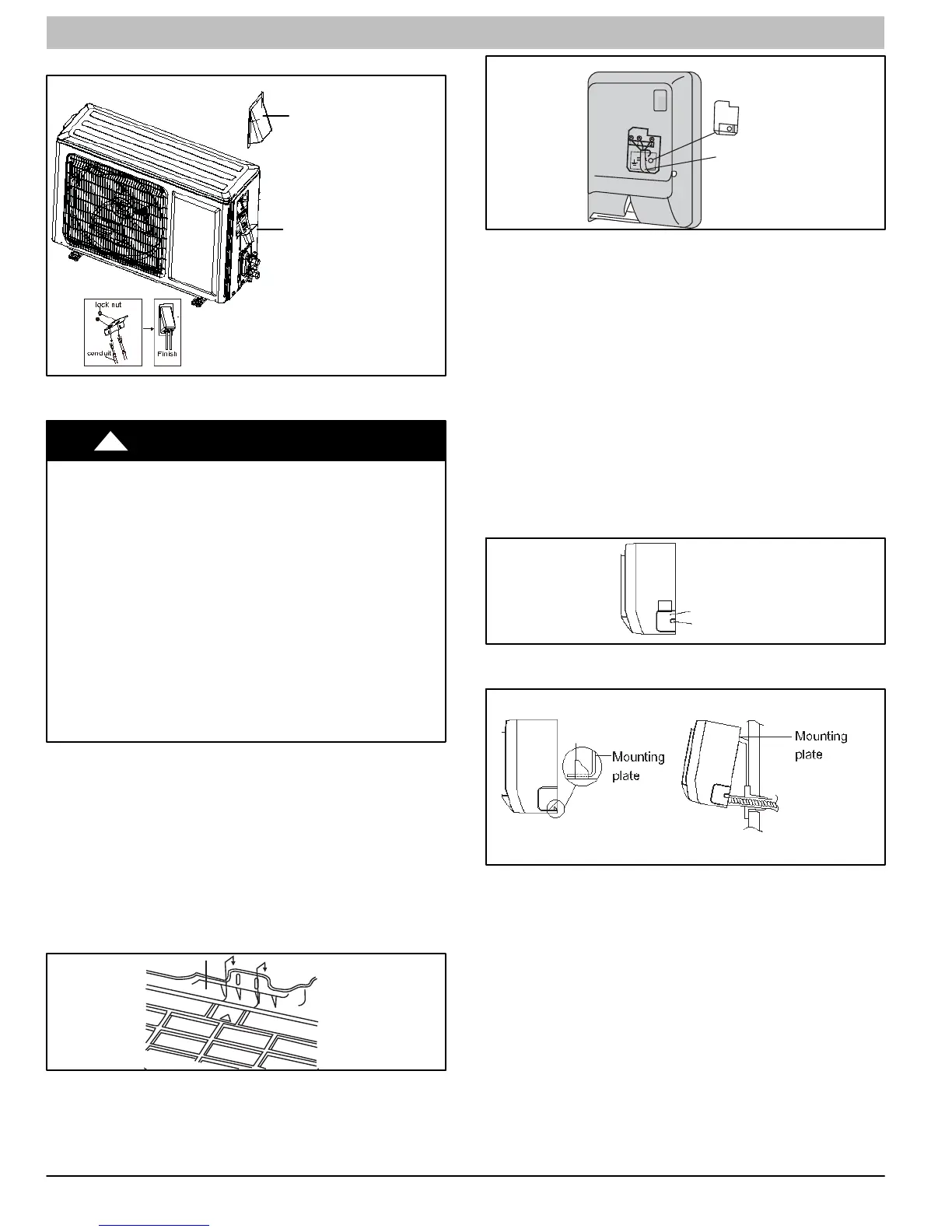 4. Hang indoor unit on upper hooks of wall mounting plate,