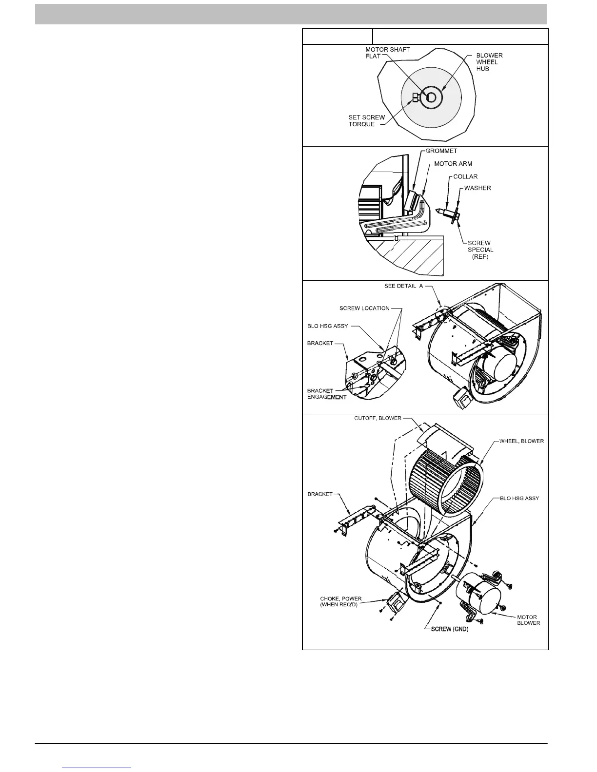 10. Torque blower wheel set screw to 160 +/− 20 lb−in. when