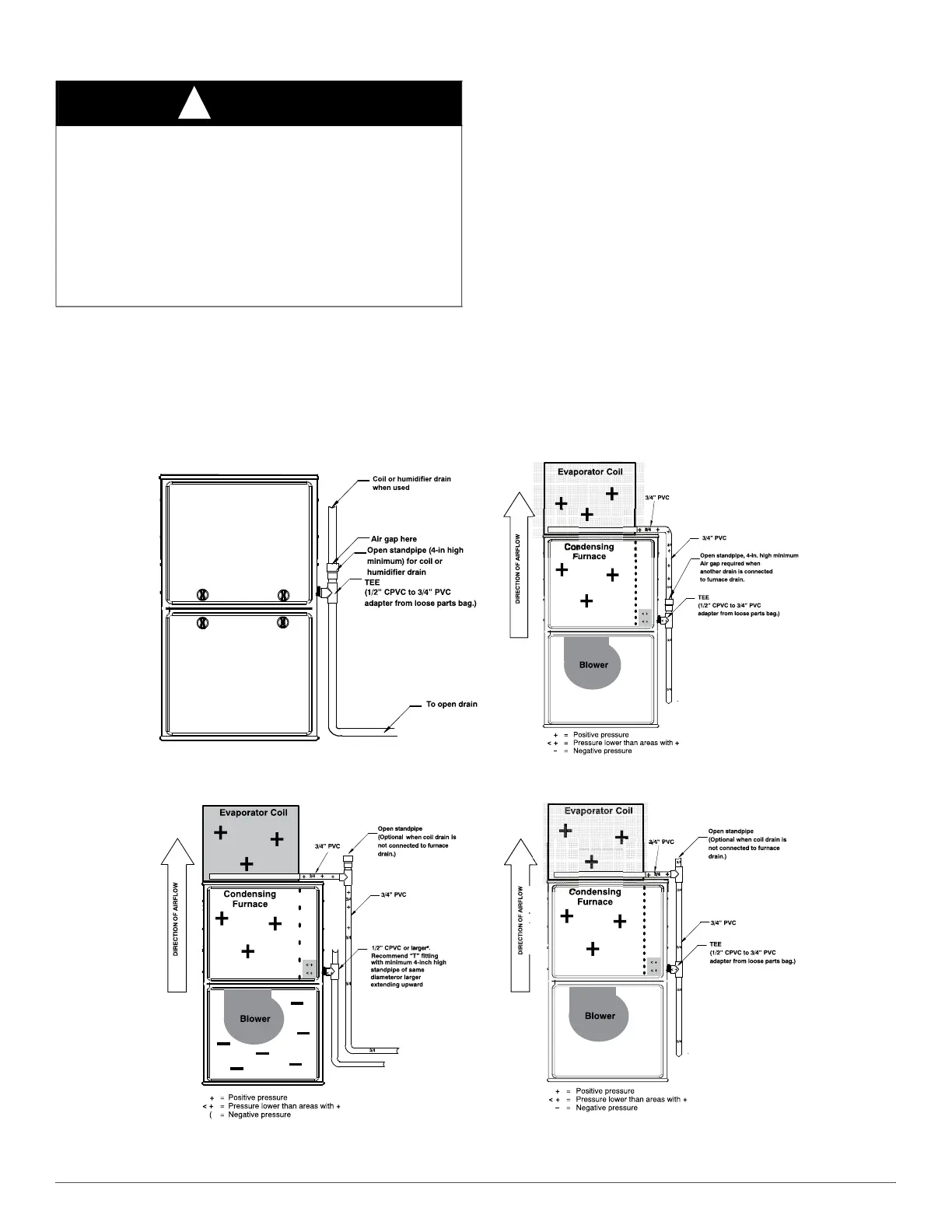 drain trap supplied with the furnace. If possible, DO NOT route the drain
