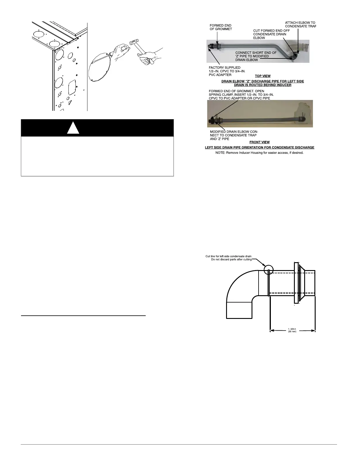 the steps, below, makes upflow left-side drain connections easier.