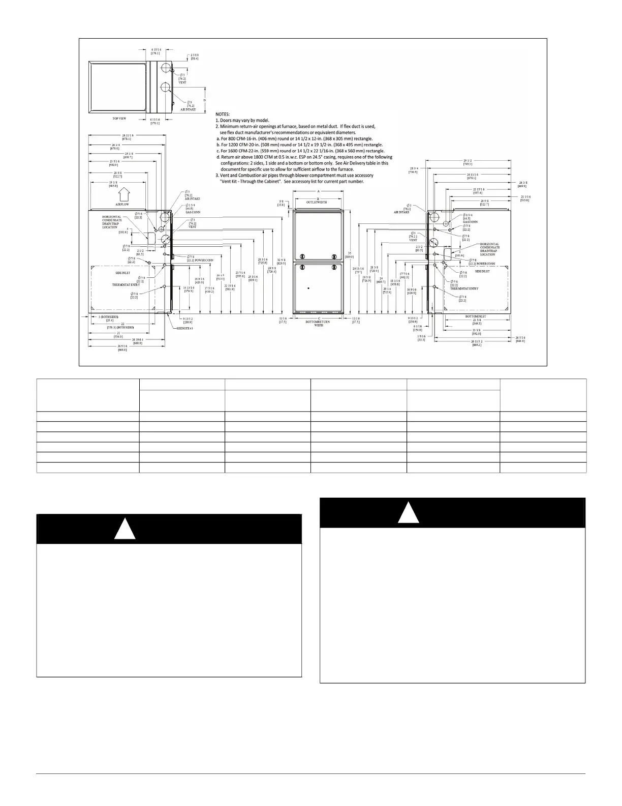 approved in factory technical specifications literature for the furnace.