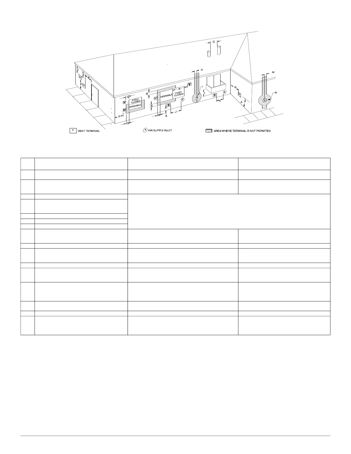 K Clearance to a mechanical air supply inlet 6 ft. (1.8 M) 3ft. (.9 M) above if within 10 ft. (3 M) horizontally