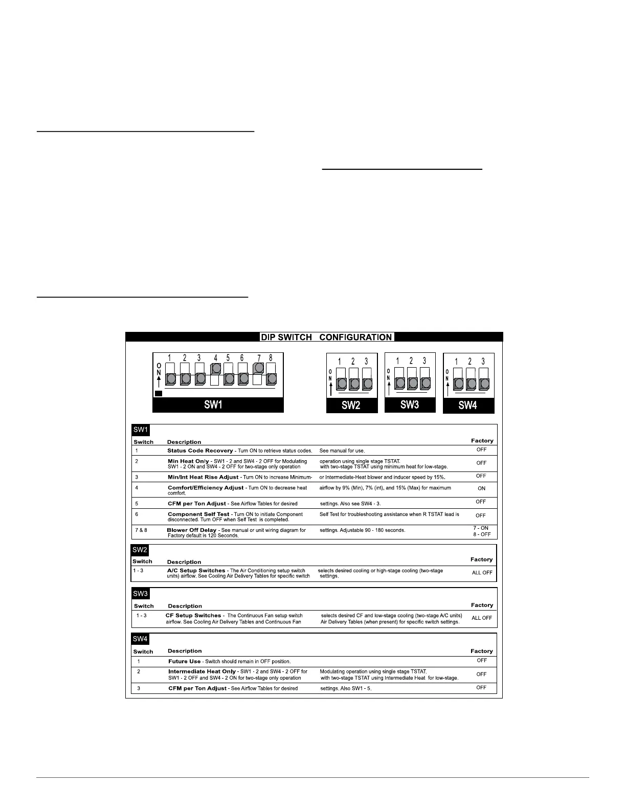 NOTE: If SW4-1 is turned ON position, the furnace control will NOT communicate with a communicating system wall control.
