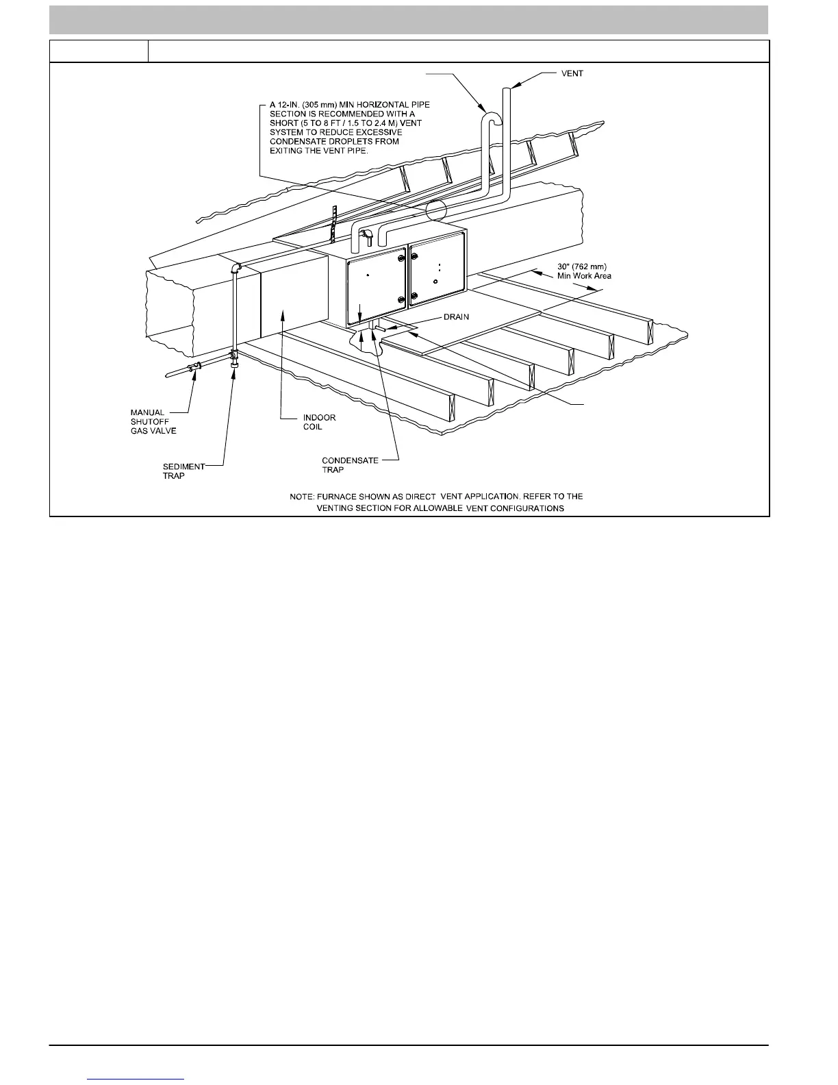 NOTE: Local codes may require a drain pan and condensate trap when a condensing furnace is installed over a finished