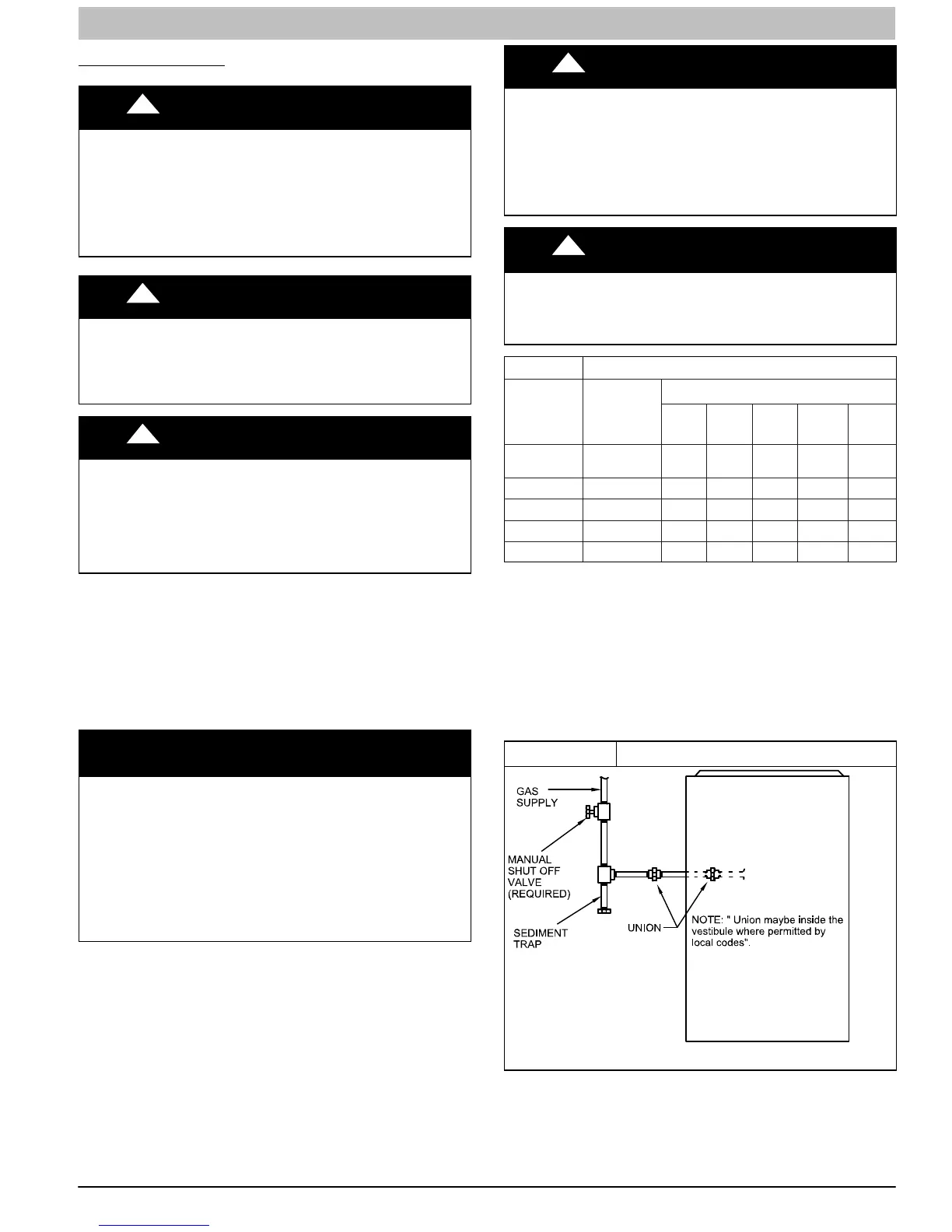Refer to Table 10 for recommended gas pipe sizing. Risers