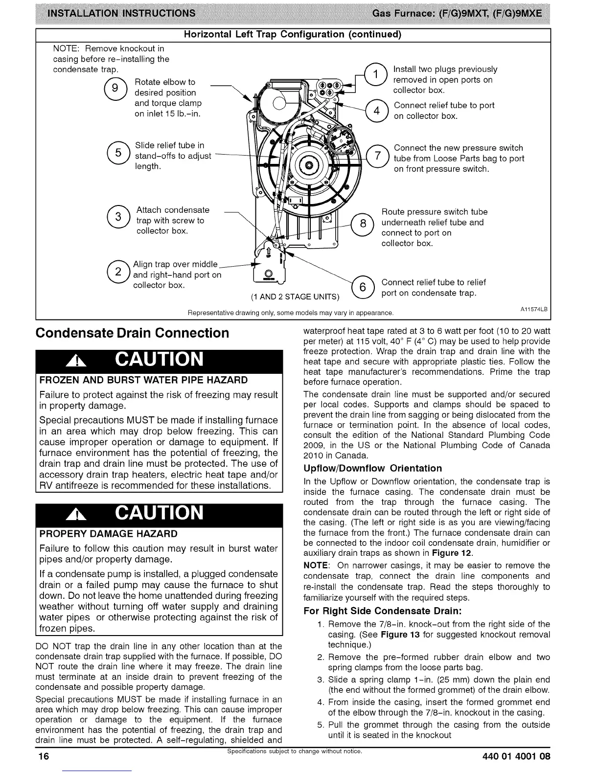 inside the furnace casing. The condensate drain must be