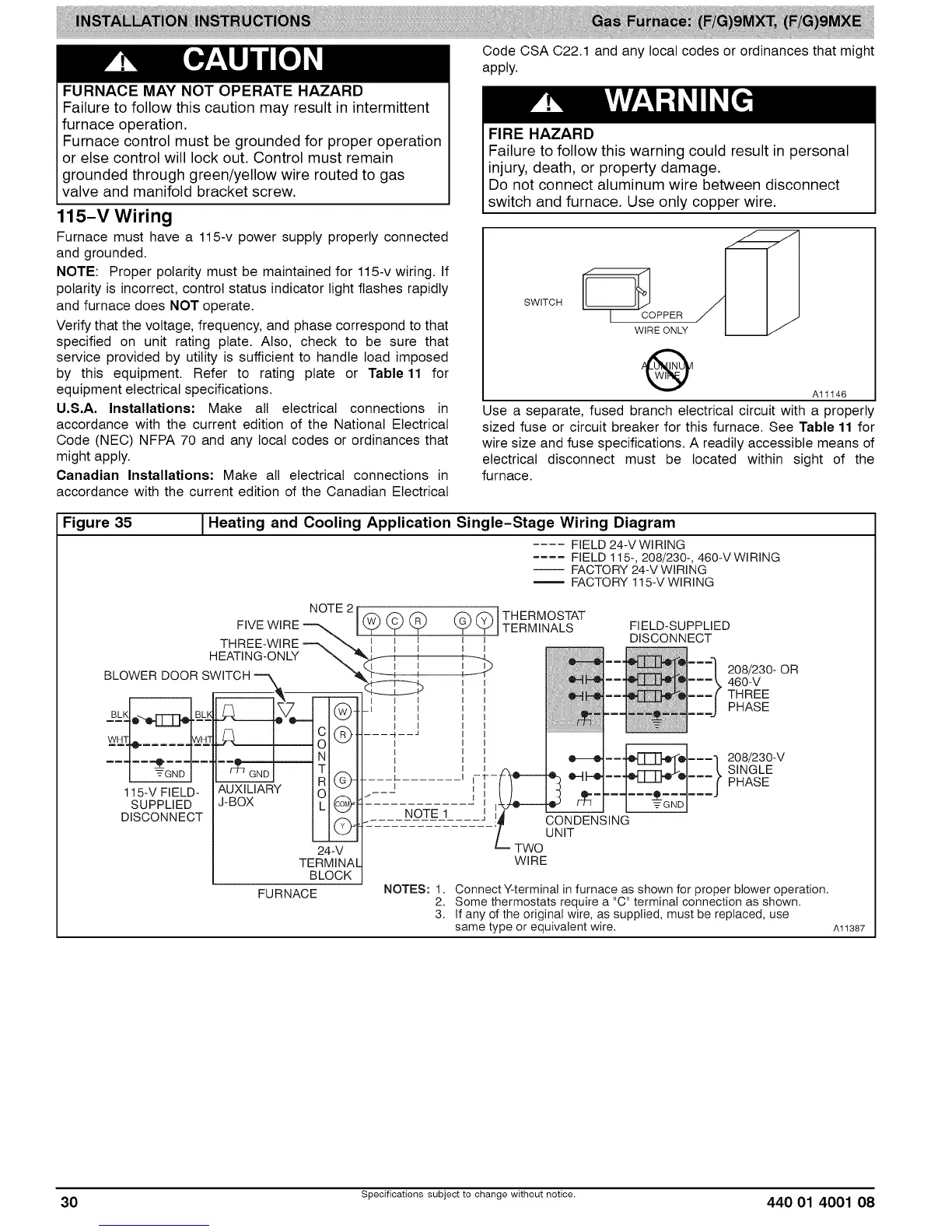 switch and furnace. Use only copper wire.